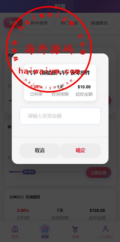 新UI投资理财系统/一路一带投资/签到/邀请返利