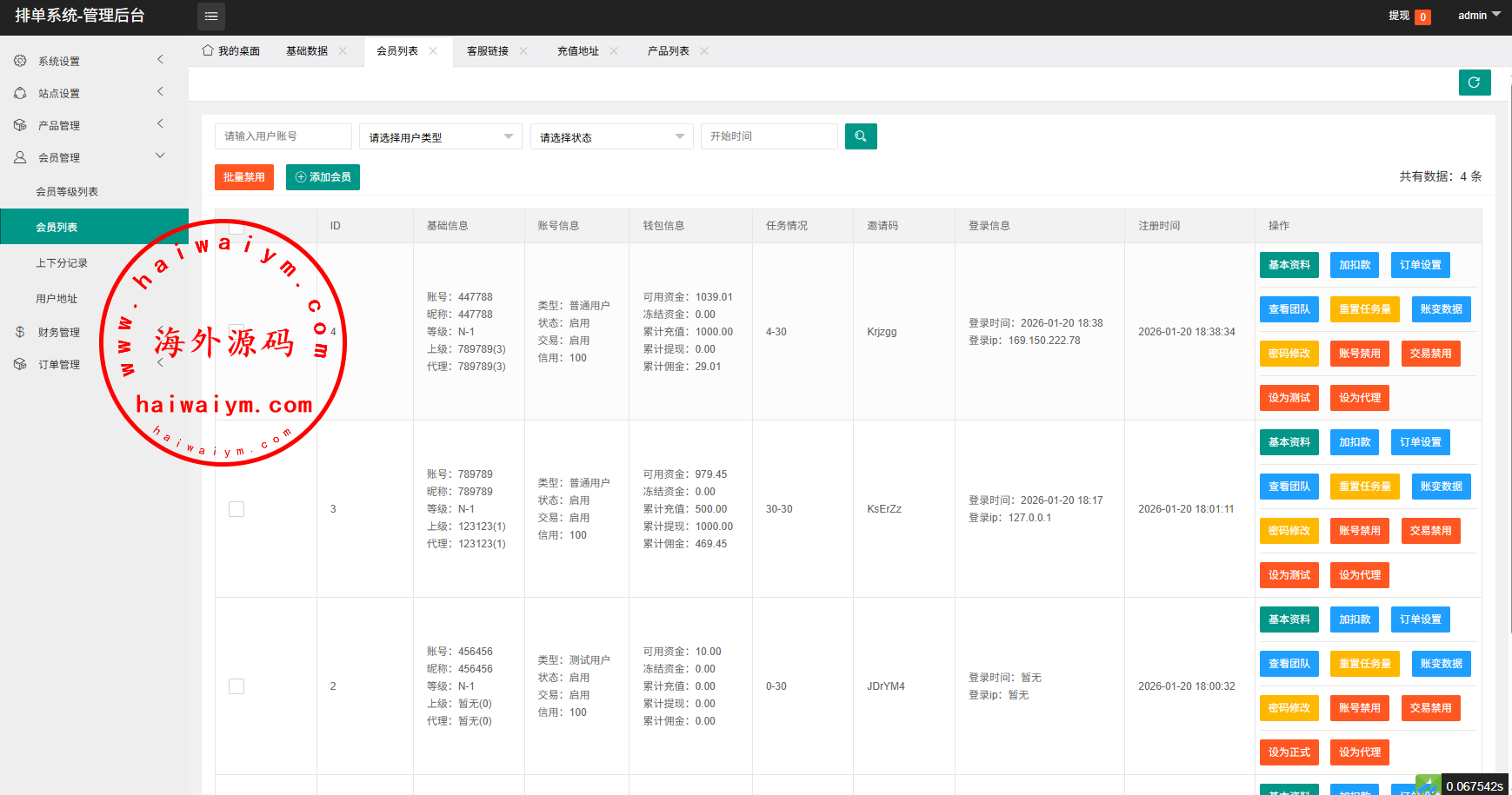 运营版抢单刷单系统/打针/做单/会员跟踪/信誉分