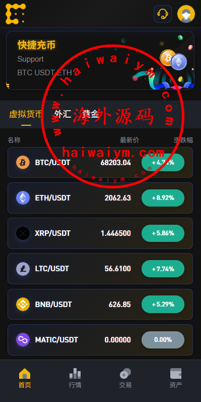 币币、合约、秒合约、质押、助力贷、理财、行情控制等功能手机vue,后台vue,后端java 全开源带教程虚拟币免费接口,外汇黄金是付费的接口