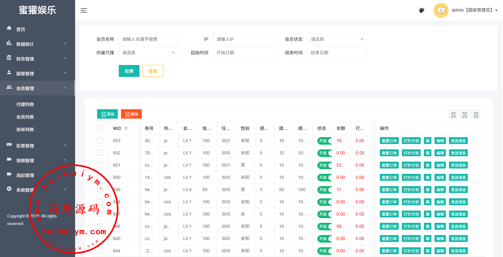 功能:U充值提现,信用分,重置订单,打针,发消息,彩票预设等功能