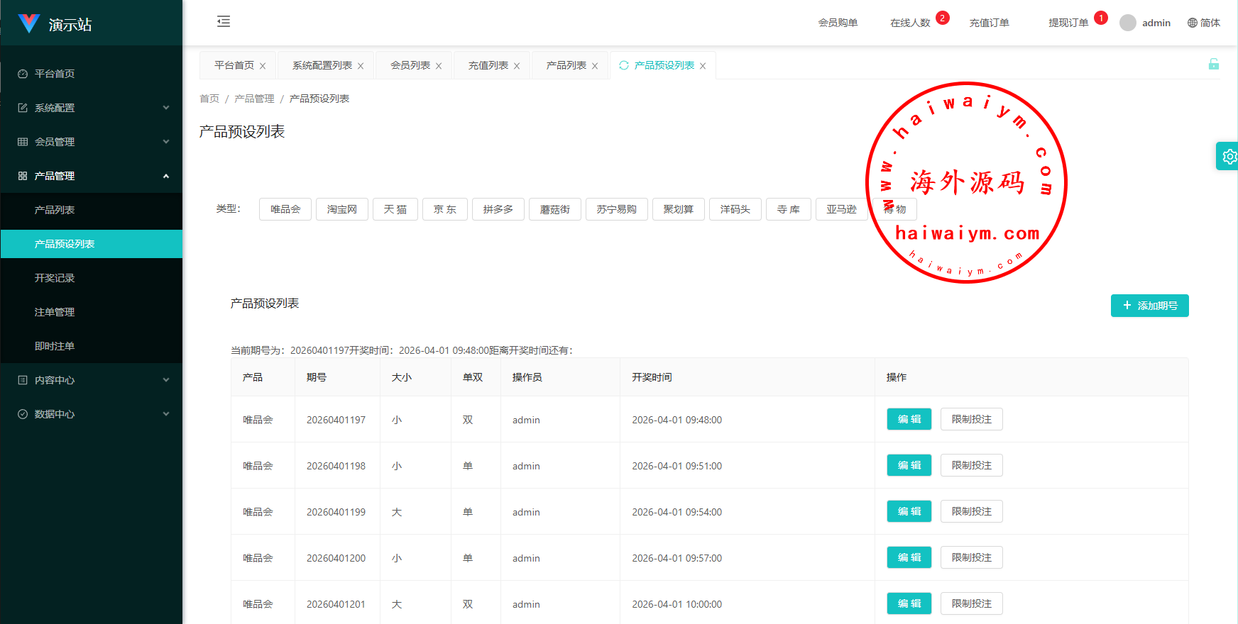 多语言海外伪商城刷单系统/CP快三/带预设/订单自动匹配