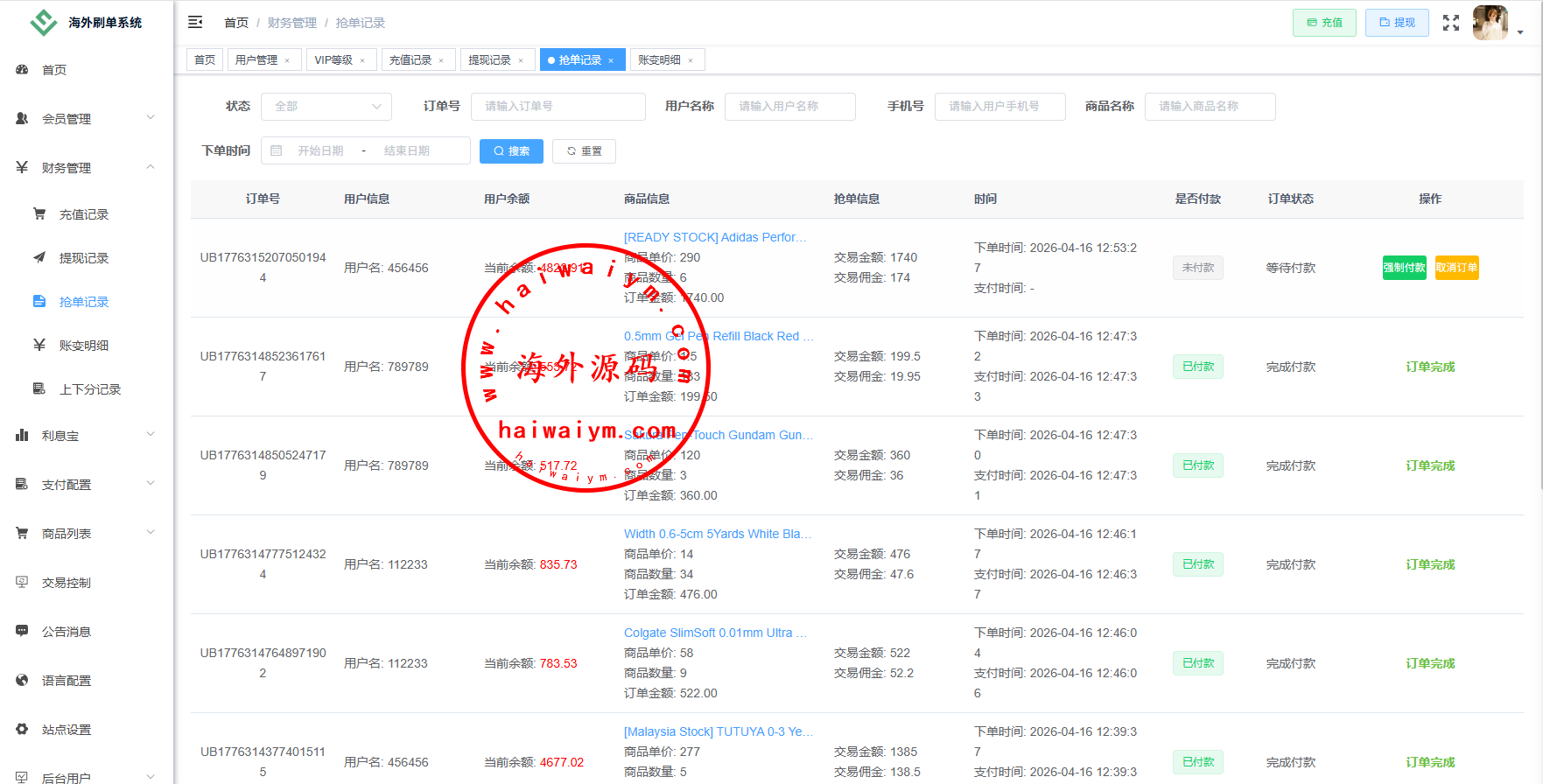 功能:金额打针,连单,信用分,重置订单,时区设置,余额宝,代理等诸多功能此套系统全开源功能可定制二开,源码不便宜嘴炮勿扰