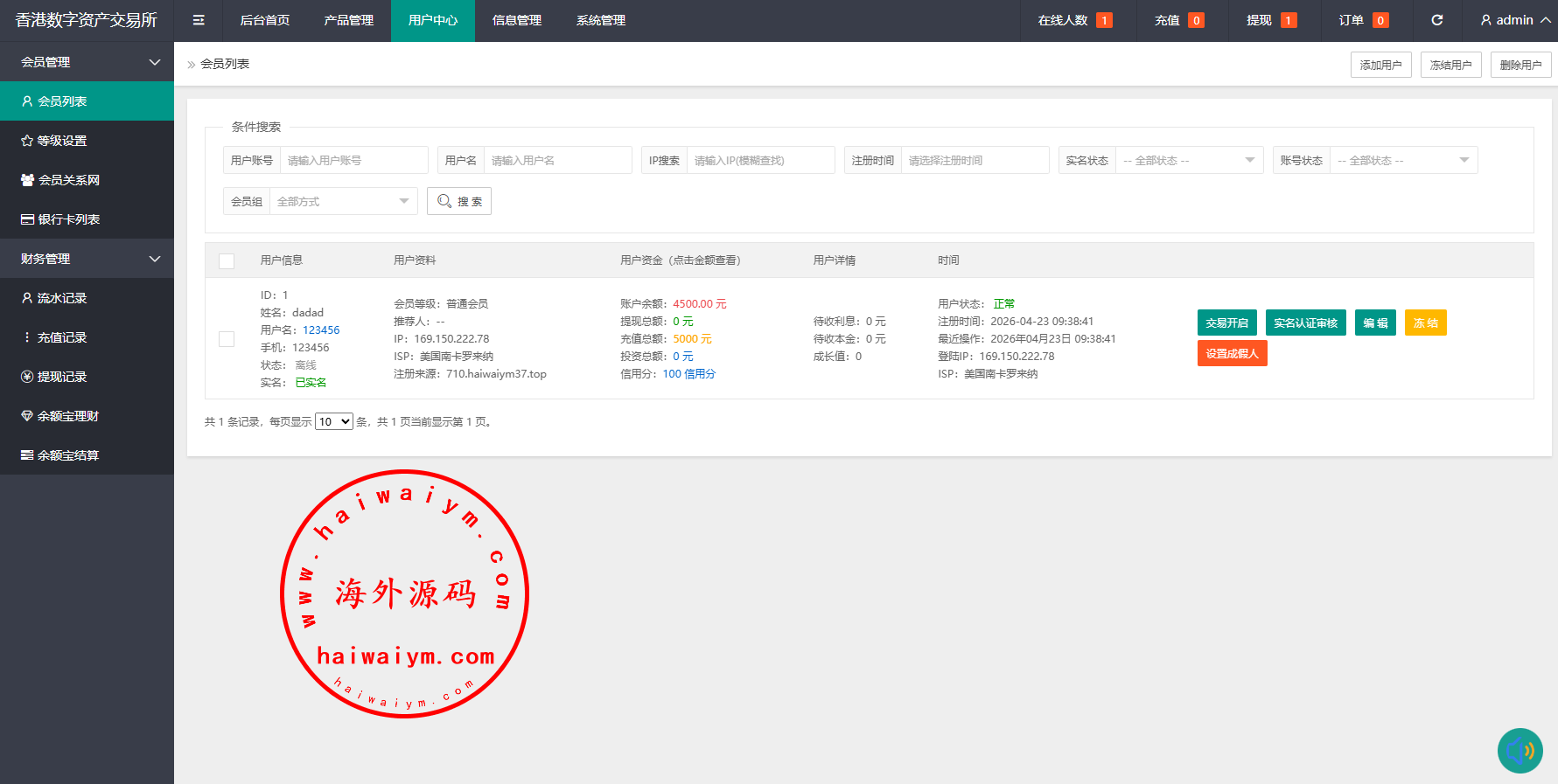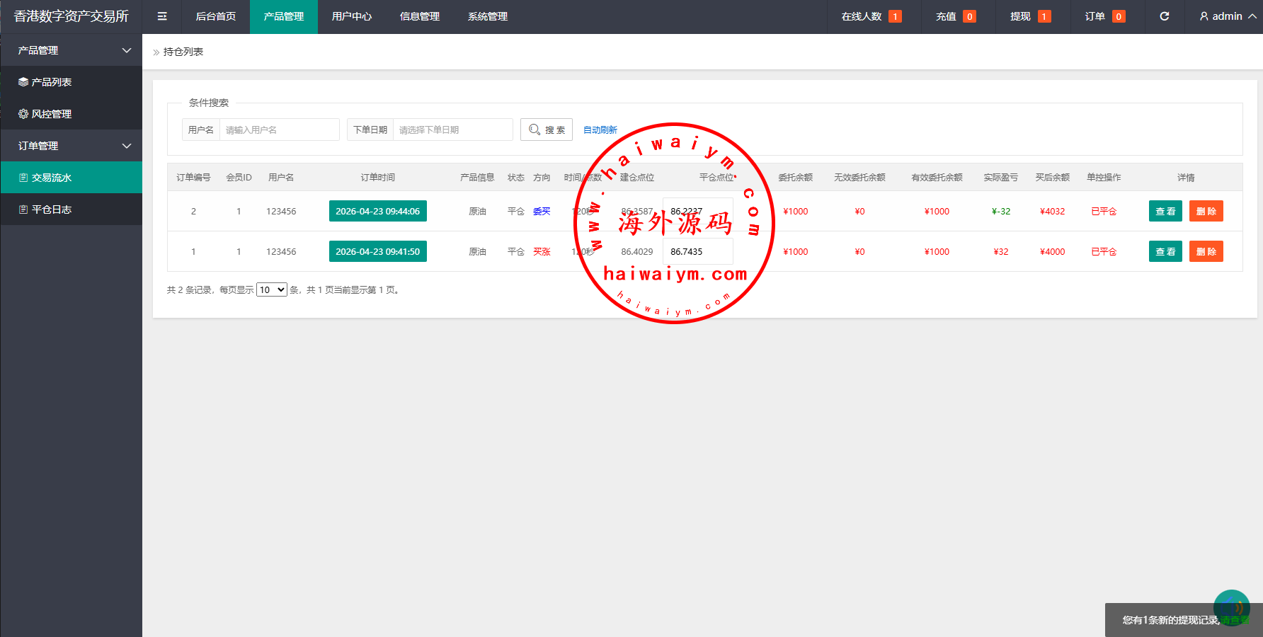 产品后台可随意更改,带委买,信用分,实名认证等功能