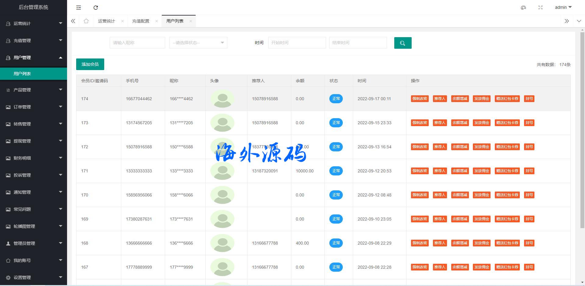 产品端包括: 管理后台 安卓端 苹果端 H5网页端源码
