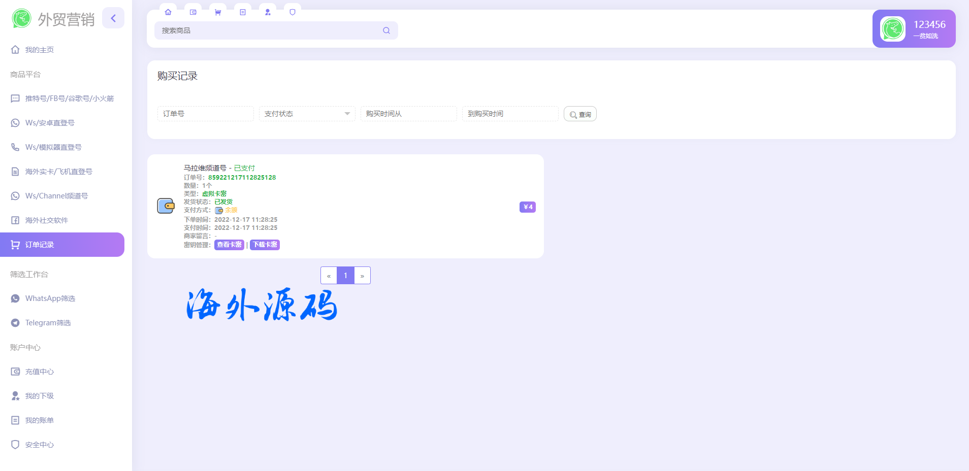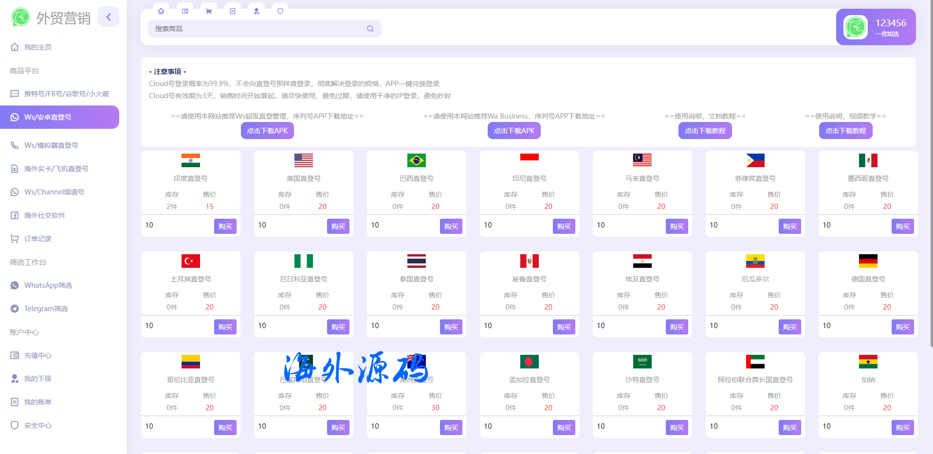 1.后台上传各种账号前台可以下单购买