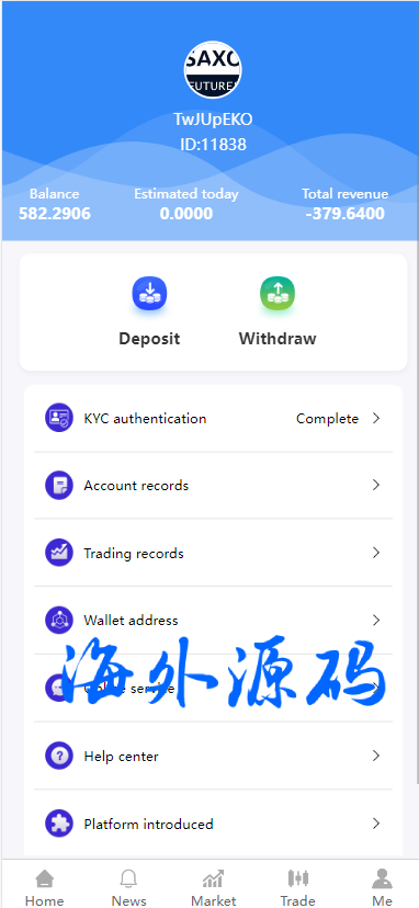源码大概就是微盘源码,前端仿交易所类型UI,前端是vue源码