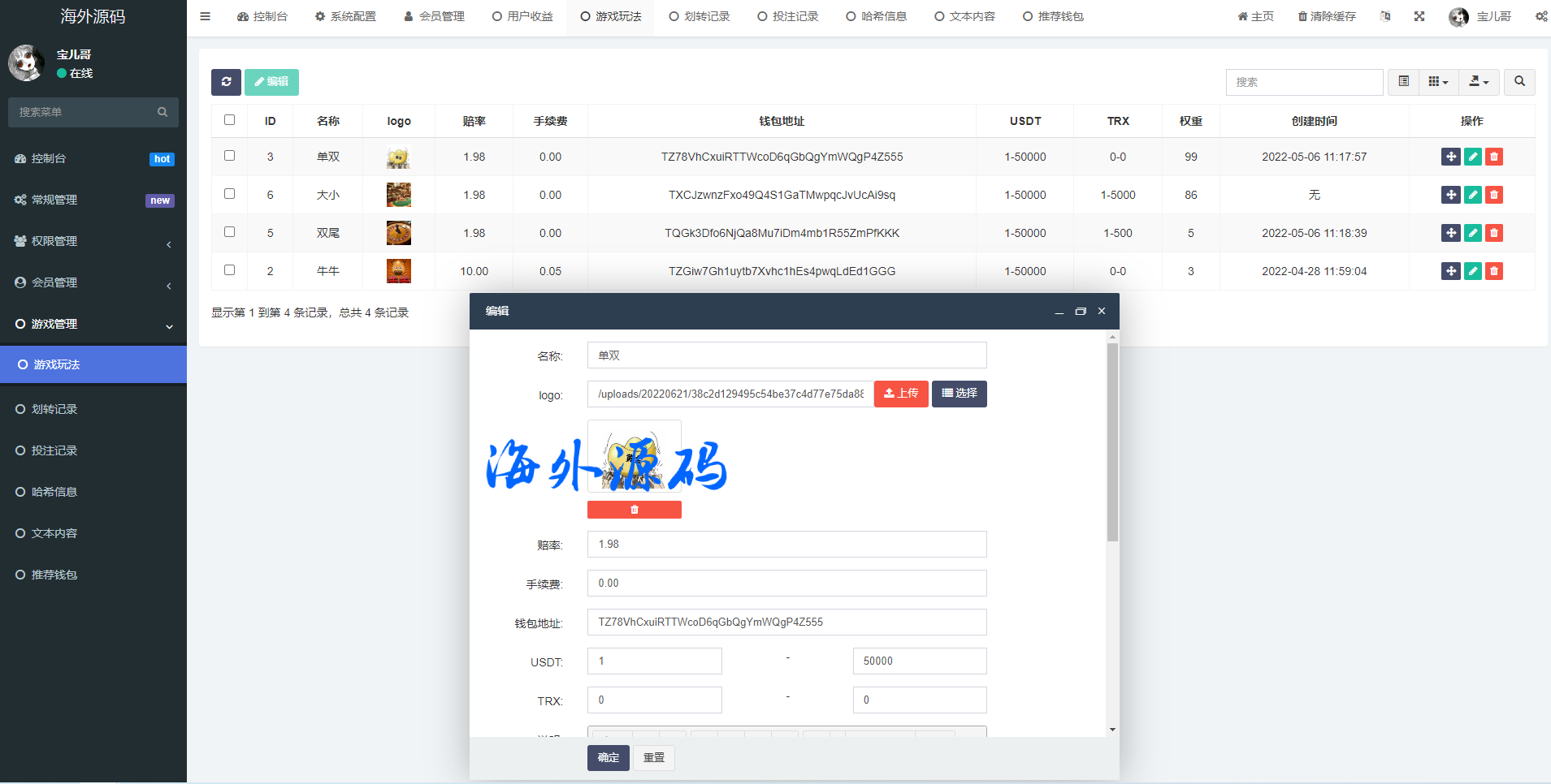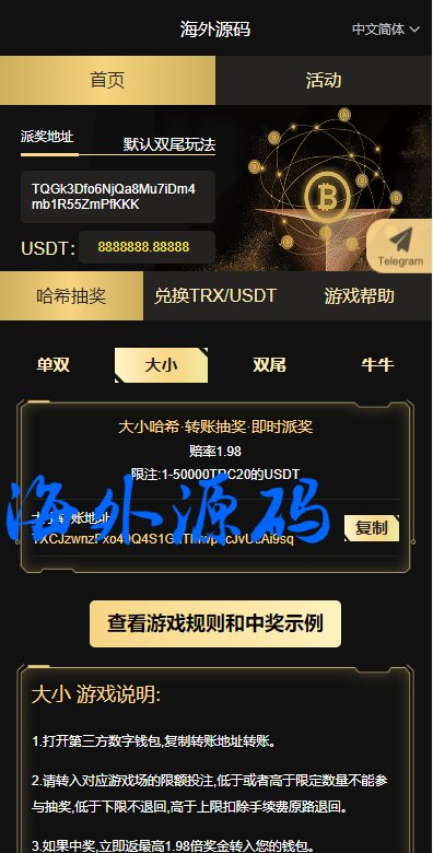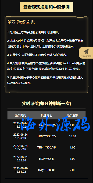 采用扫区块获取哈希结果 游戏: 牛牛 单双 大小 双尾