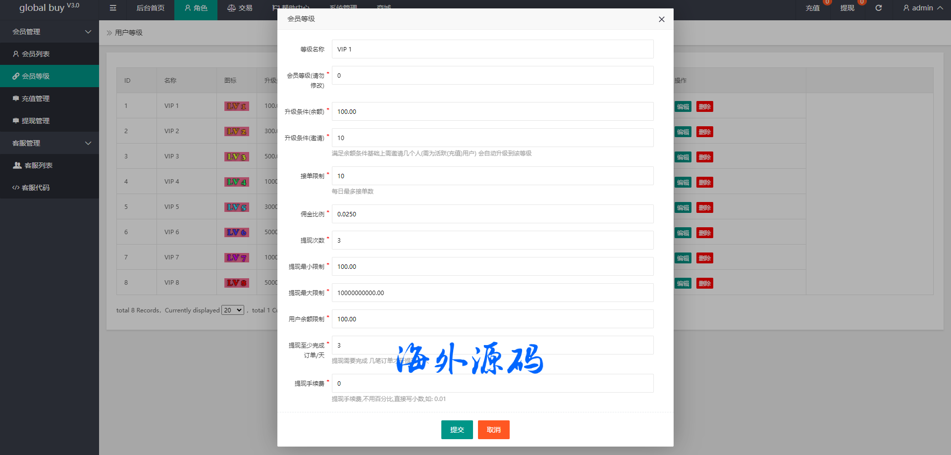 功能支持分组、百分比、固定值、连单设置、充值彩金等众多功能