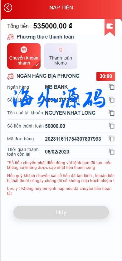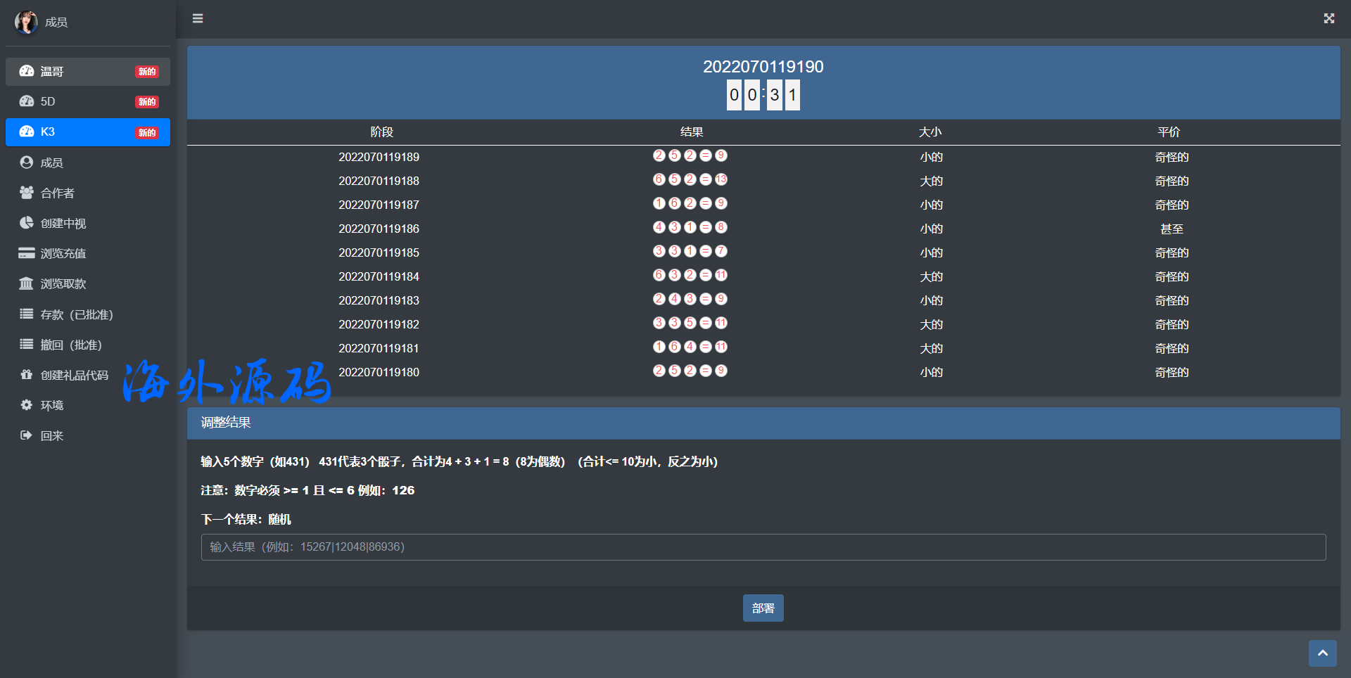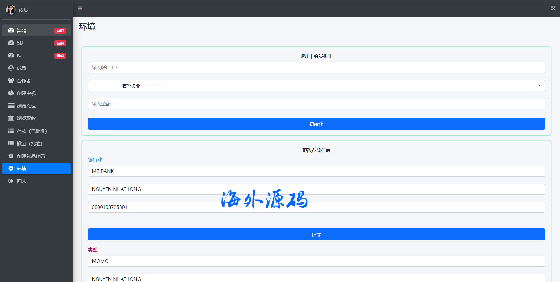 系统是针对越南本土开发的下注游戏带开奖控制,前后端均为越南语言