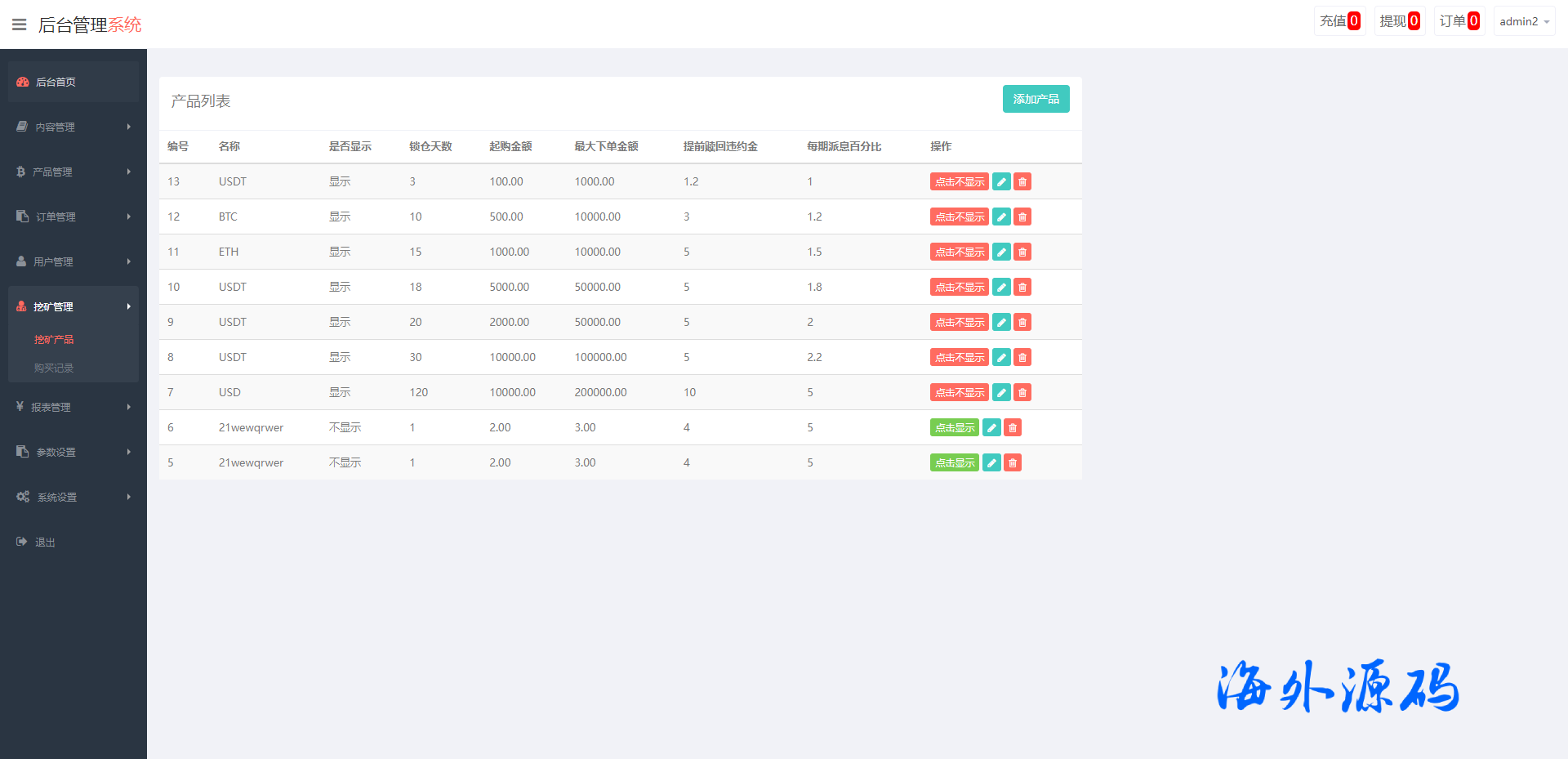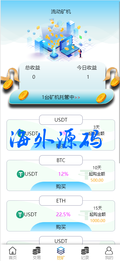 系统功能控制齐全,新增了矿机质押理财功能