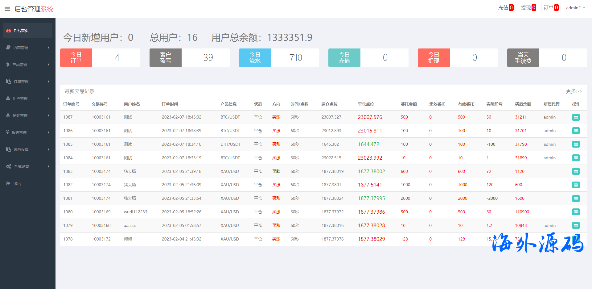 二开版虚拟币微交易系统/伪交易所系统/代理后台/余额宝微盘源码