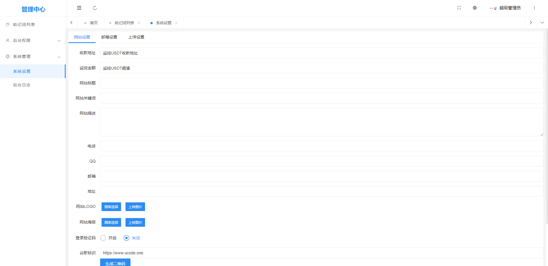 系统新增功能前端用户导入私钥或者助记词,钱包有超过后台设置监控金额自动归集到设置钱包
