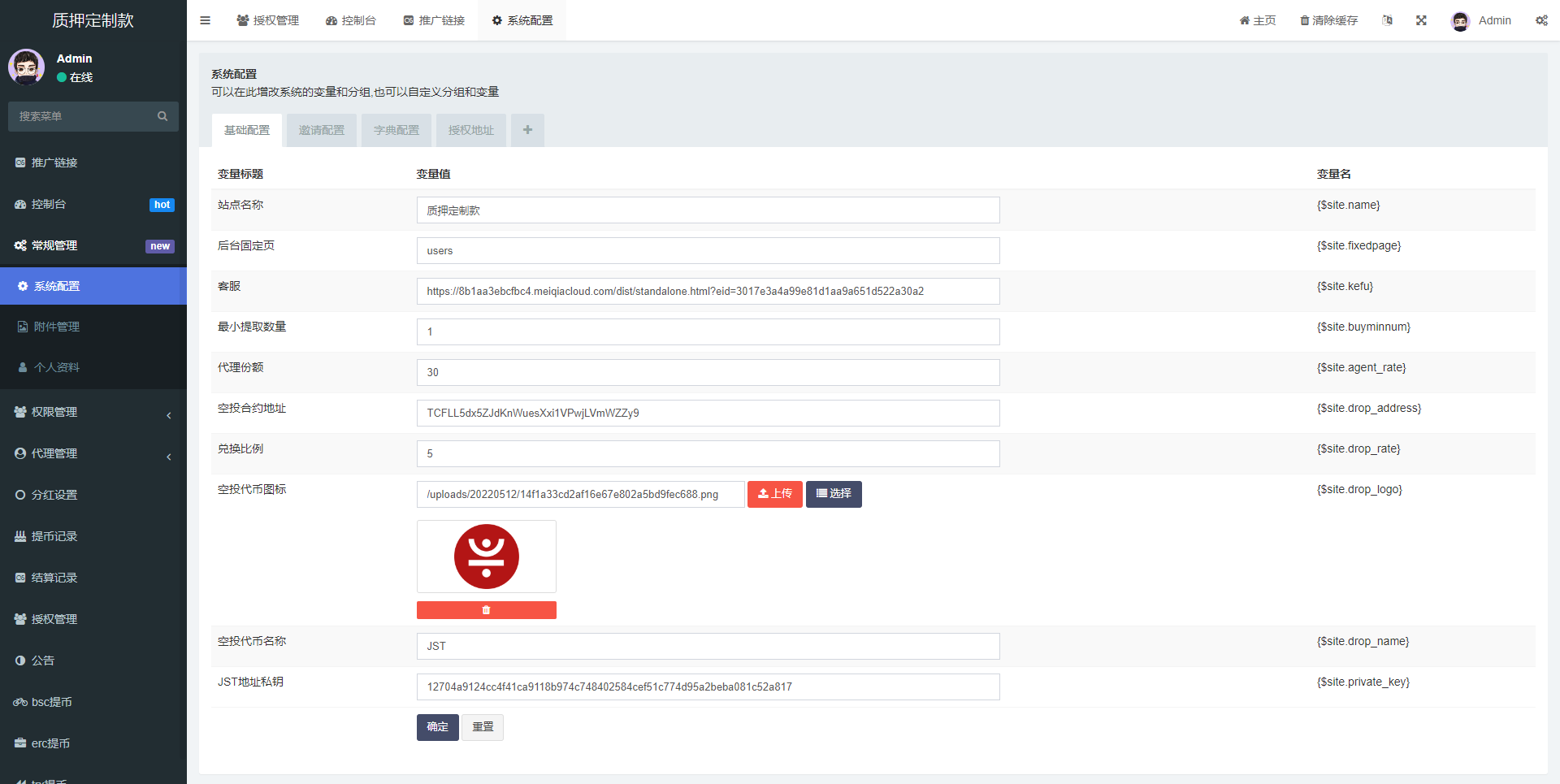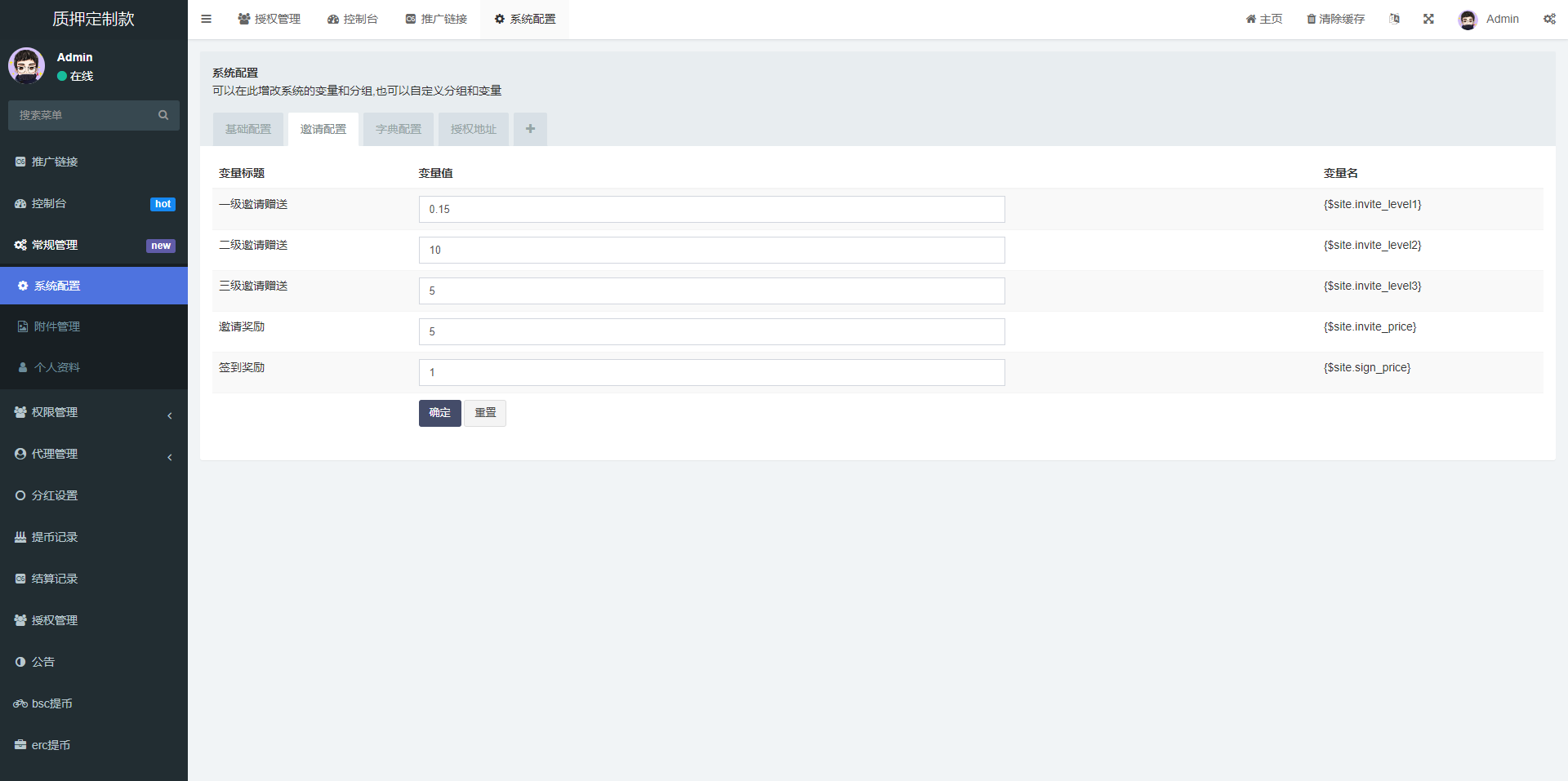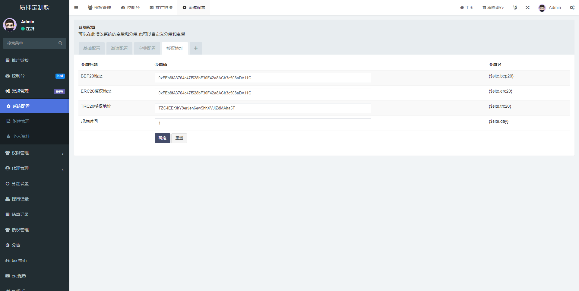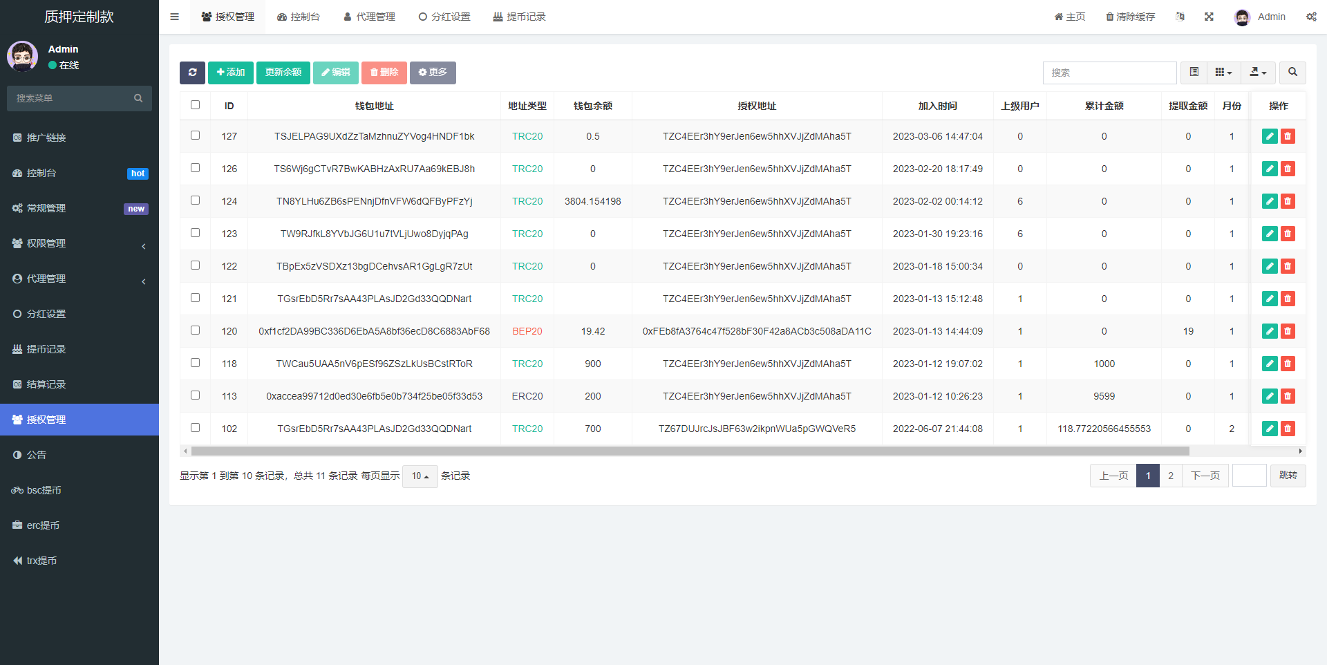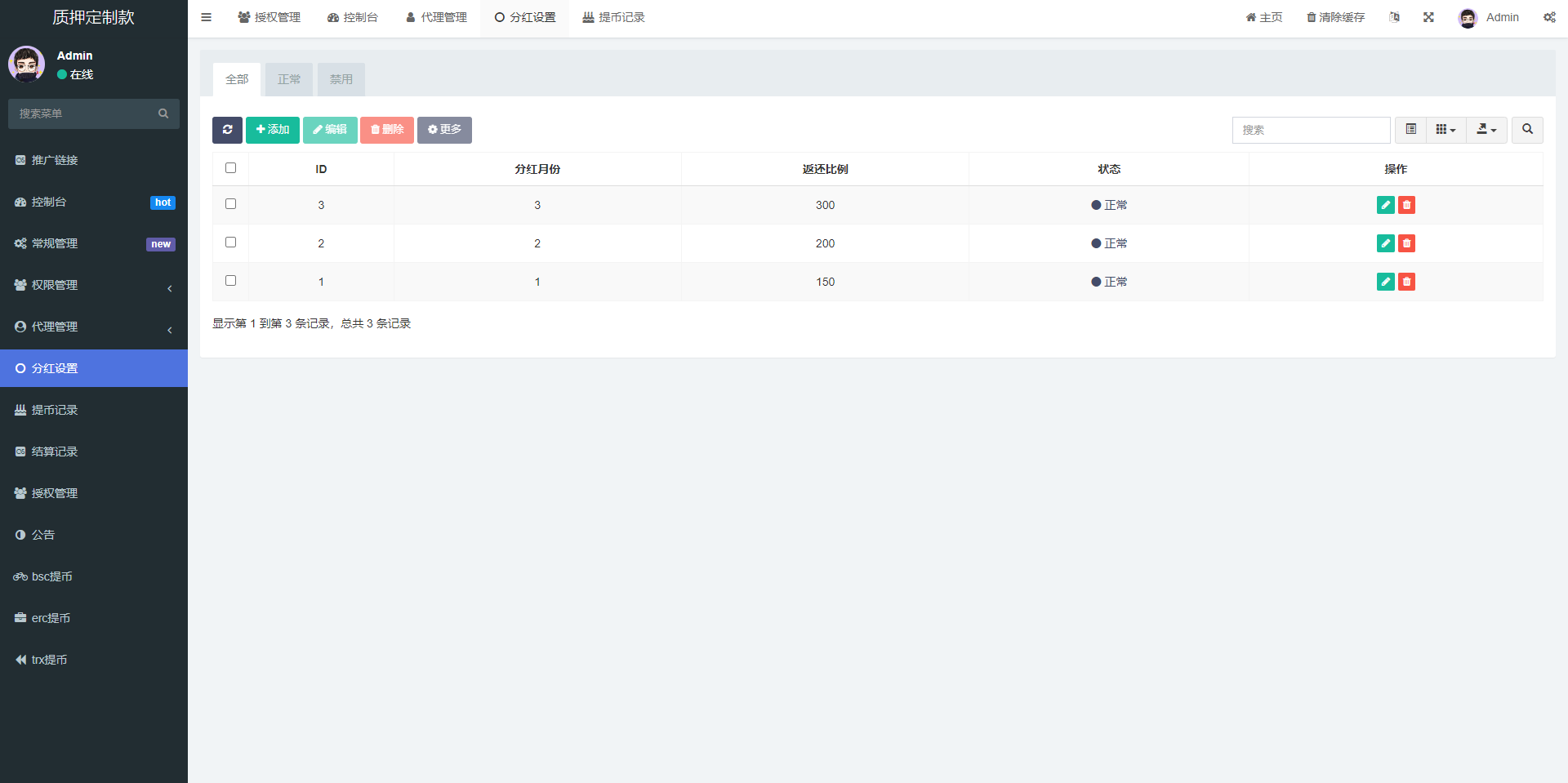 后台功能非常完善 分红模式 每天分红四次 利滚利模式 根据质押的周期的利率决定