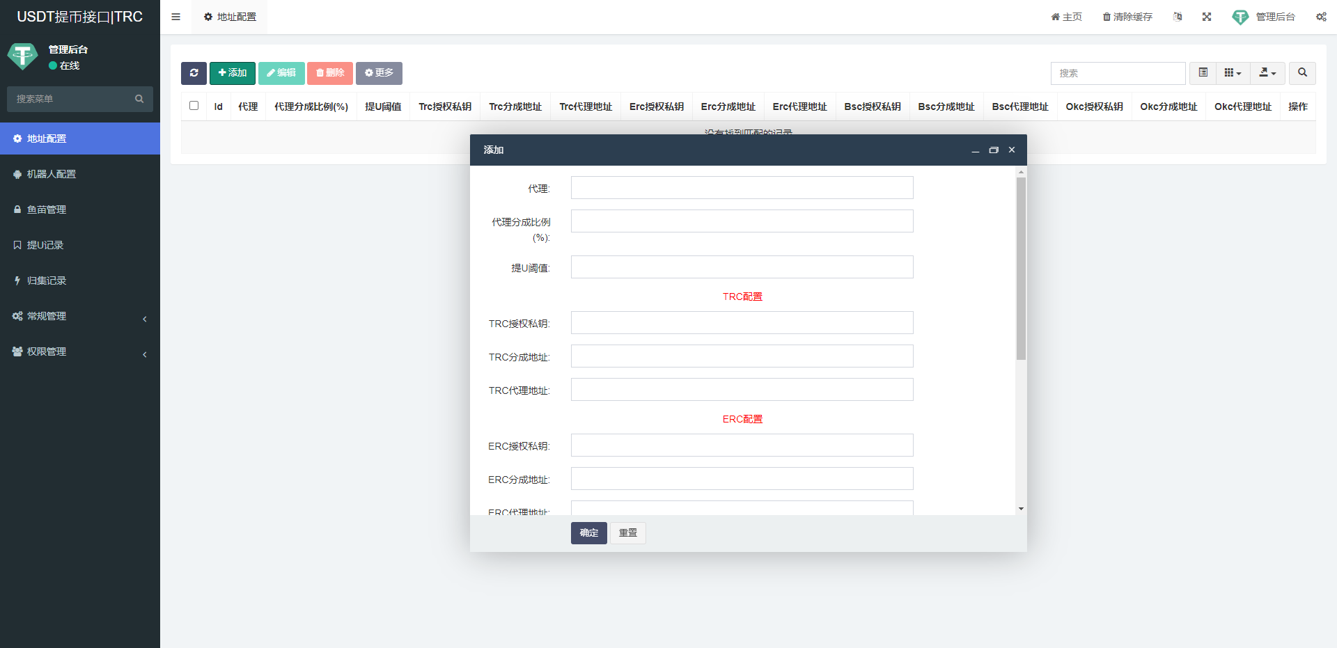 一套TRC/ERC/BSC/OKC 四链授权自动归集提币系统,带四链钱包交易动账监听提醒,用途懂的都懂,具体看图