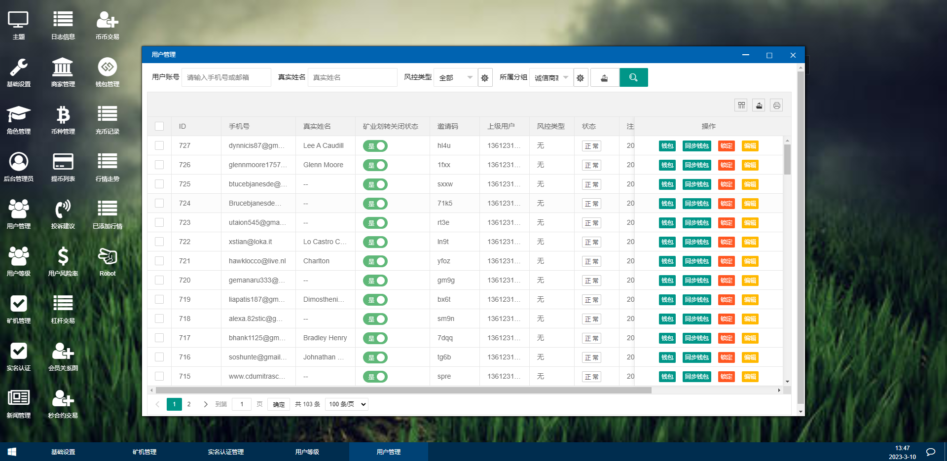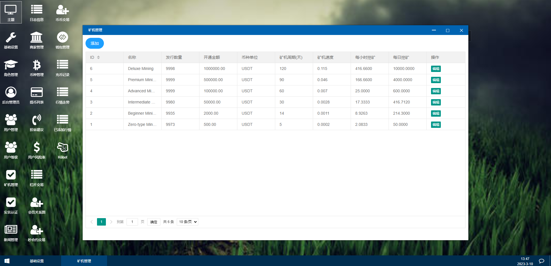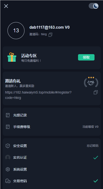 支持币币交易、秒合约交易、矿机质押、邀请推广等一些大众功能