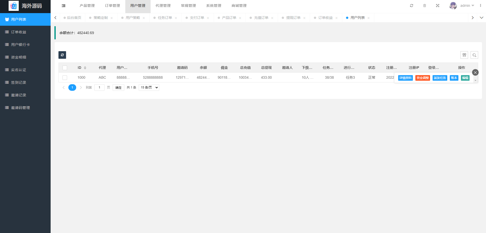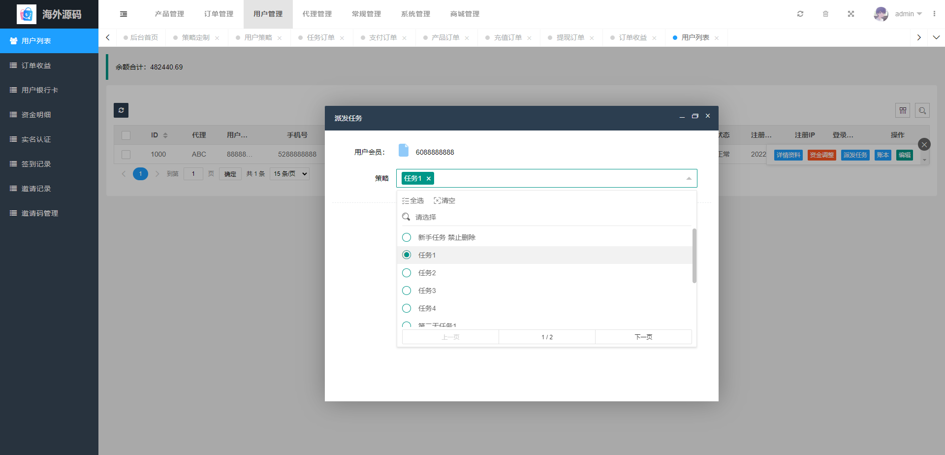 支持用户策略定制在线派单,系统基本符合市场需求,单独的代理后台等功能