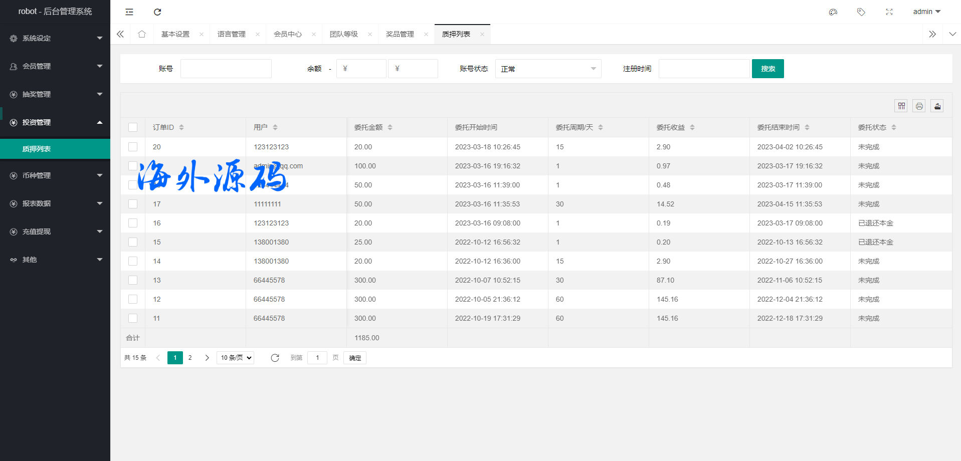 此套虚拟币质押投资系统几乎完美,前端多语言后台可设置默认语言