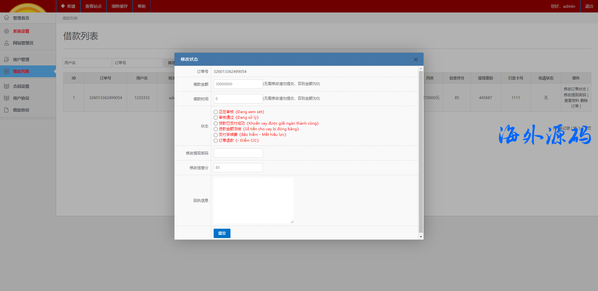 越南小额贷款系统/贷款平台源码/套路贷源码