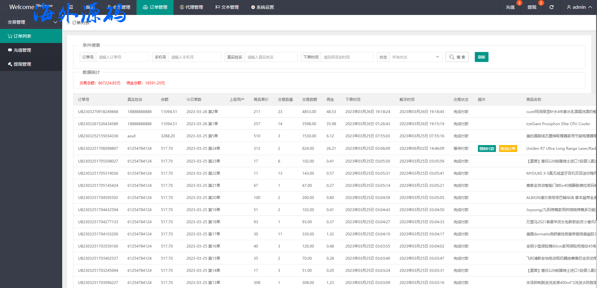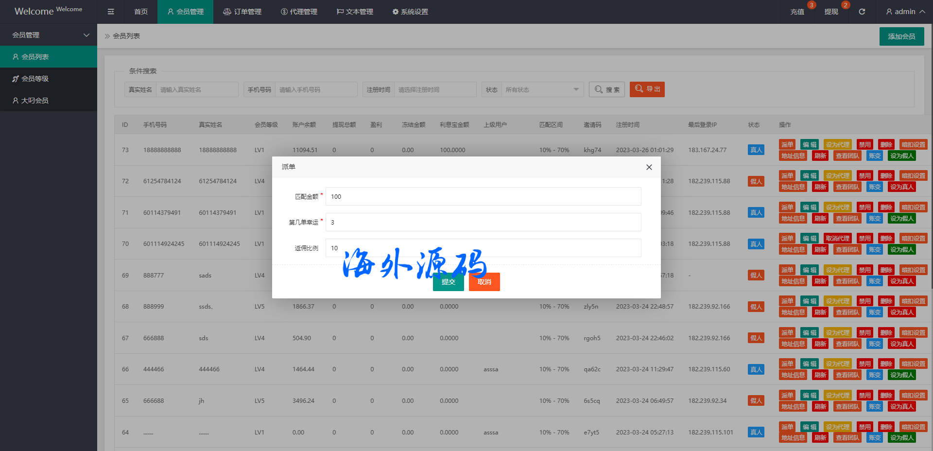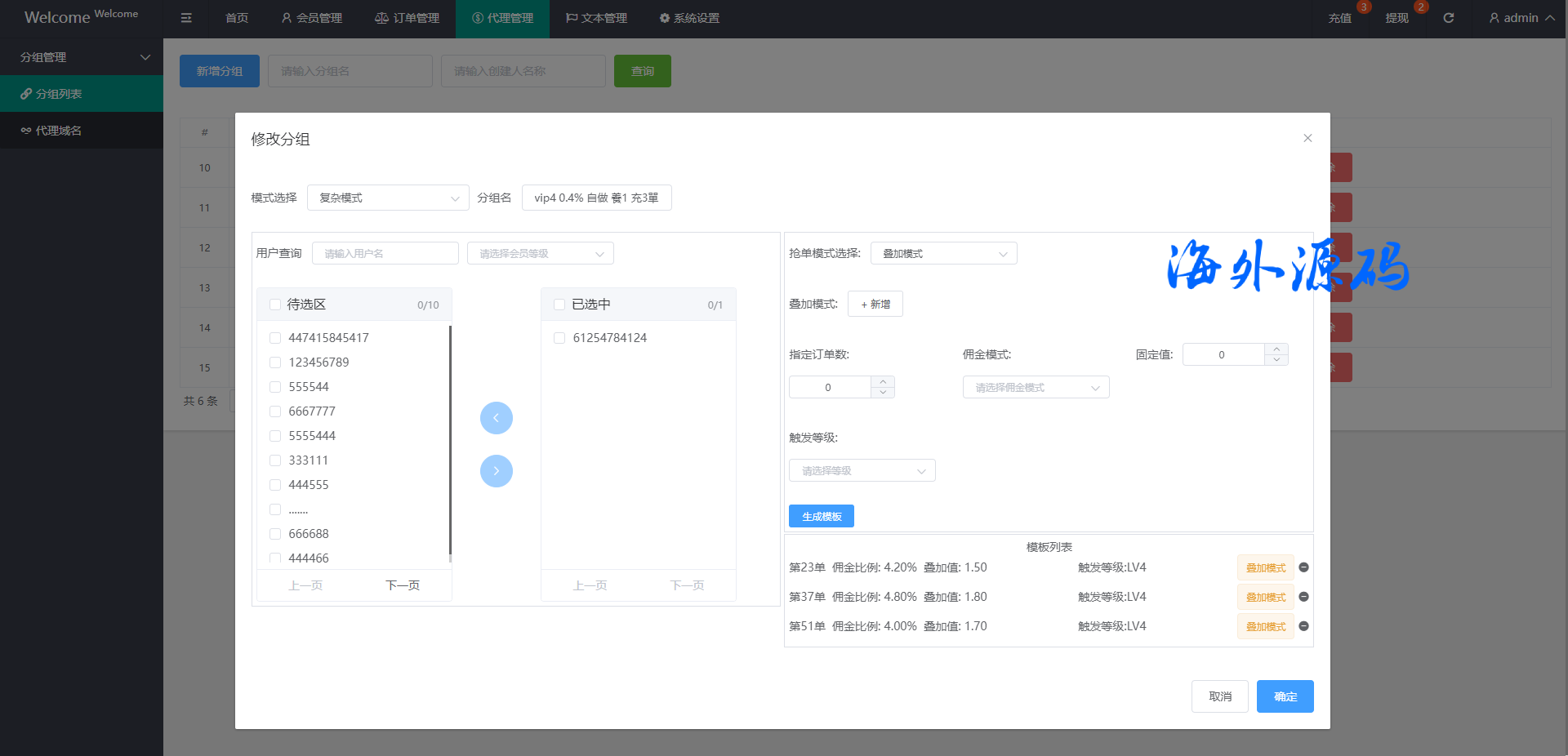 海外抢单刷单系统/派单/分组杀/余额宝/订单自动匹配系统