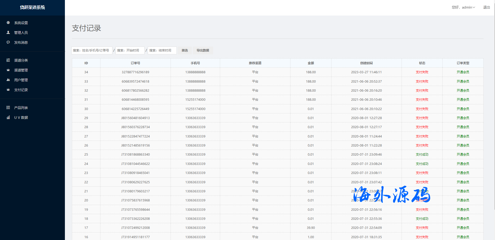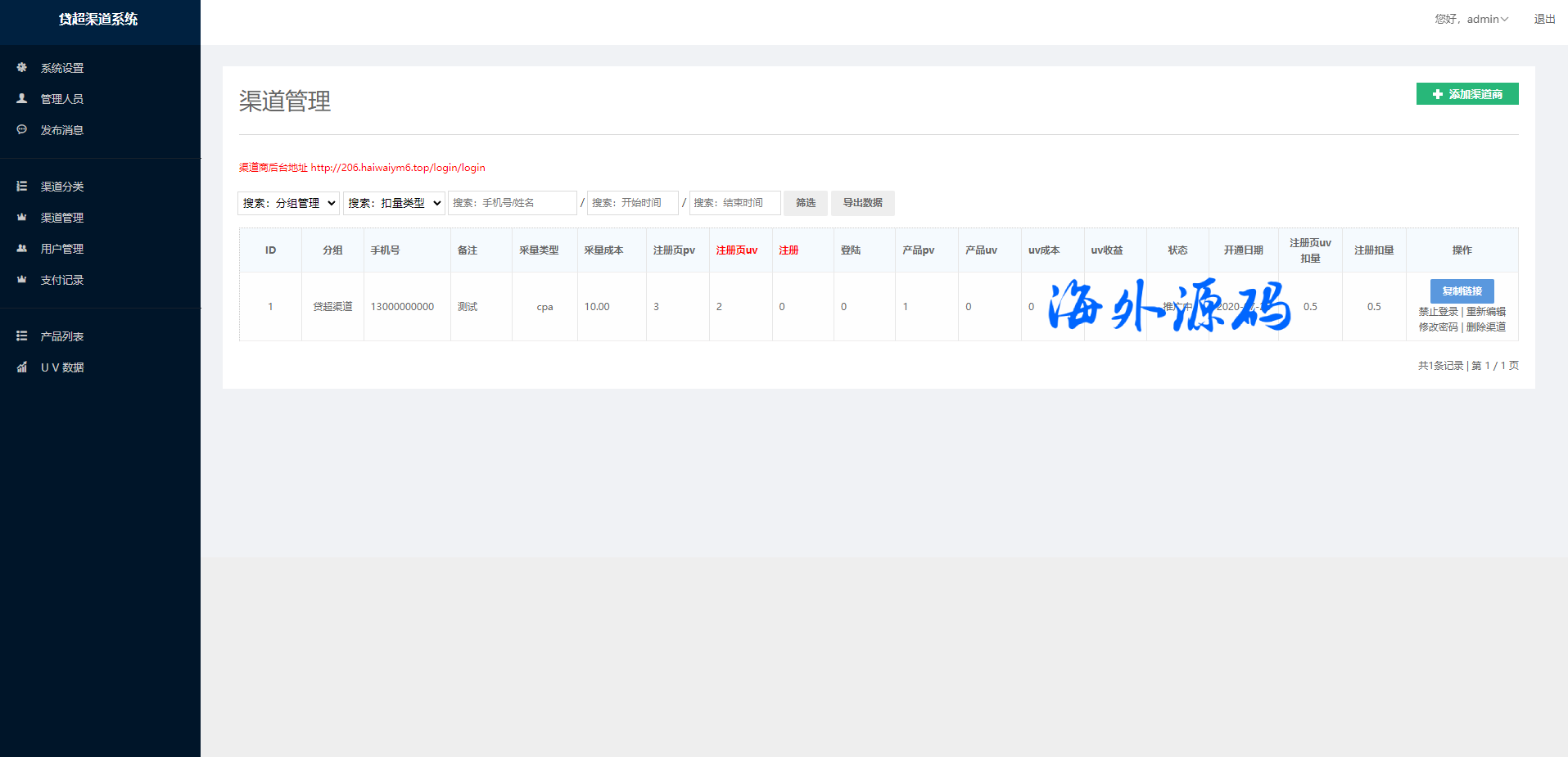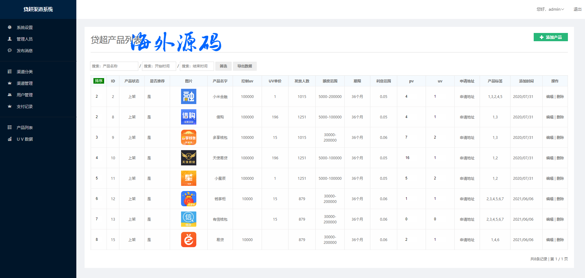 小额贷款超市系统功能齐全 UI大气 短信 支付 PV UV数据 渠道推广 扣量