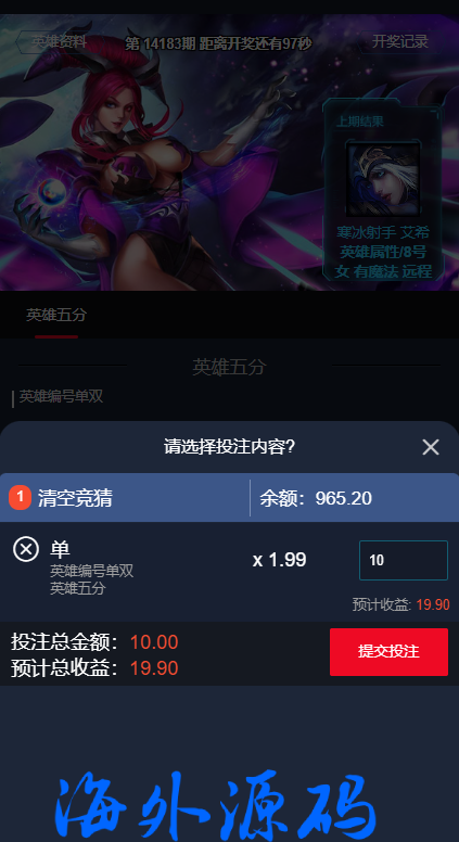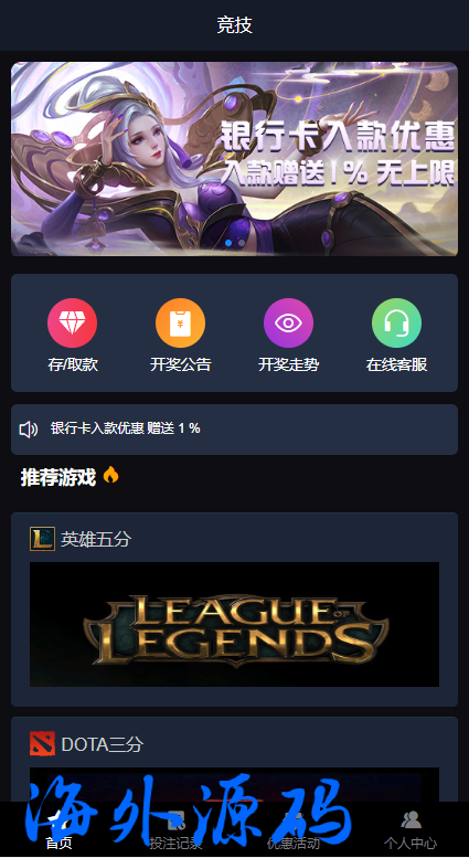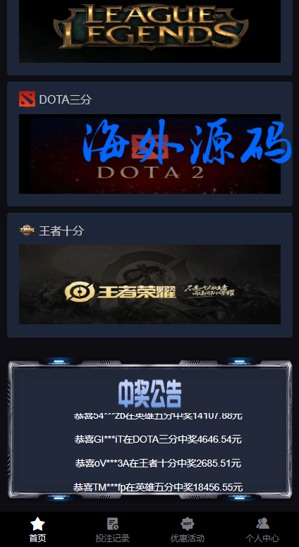 电竞赛事盘系统/电竞赛事投注竞猜源码/LOL/王者/Dota游戏下注