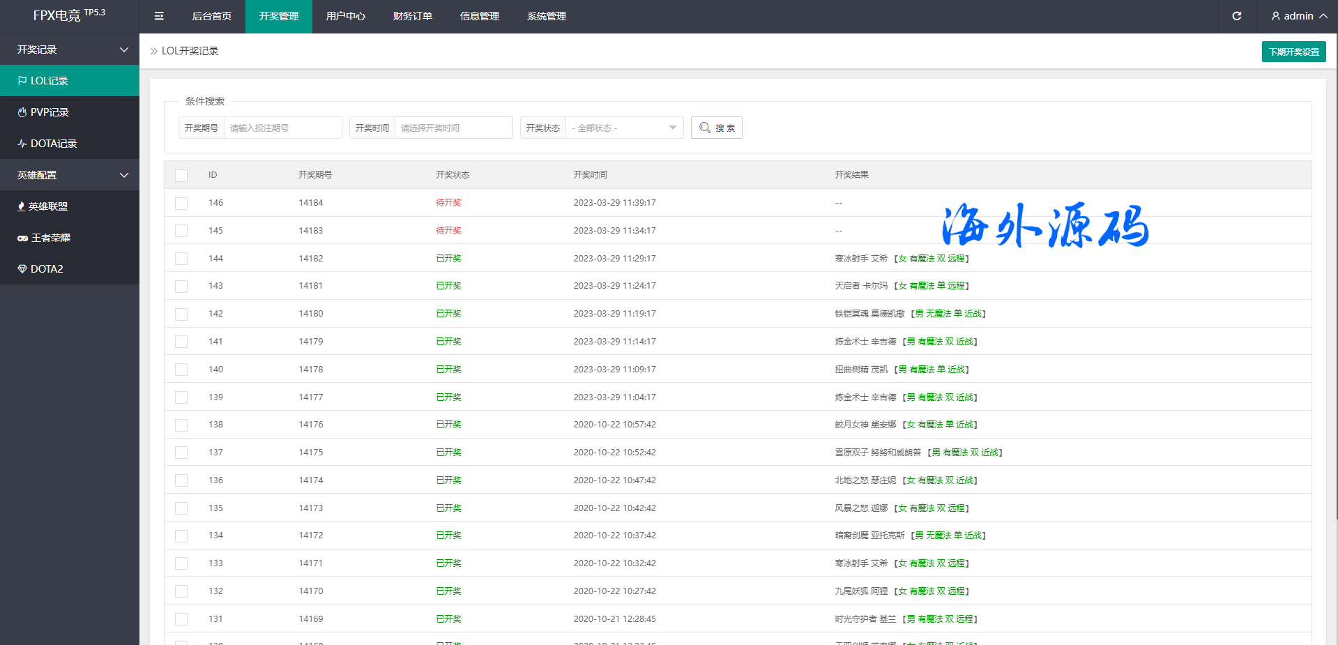 一套以前毕竟热门的游戏竞猜系统,开奖使用系统彩执行开奖即可