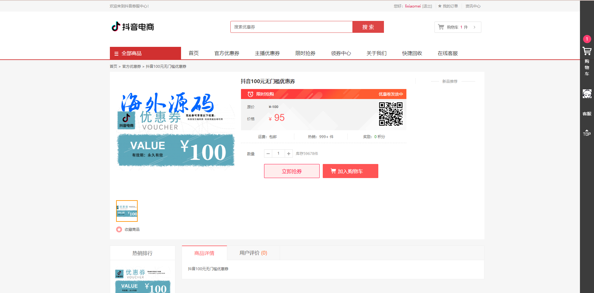 定制版抖音卷系统/抖音电商卷抢购回收/抖音电商投资理财