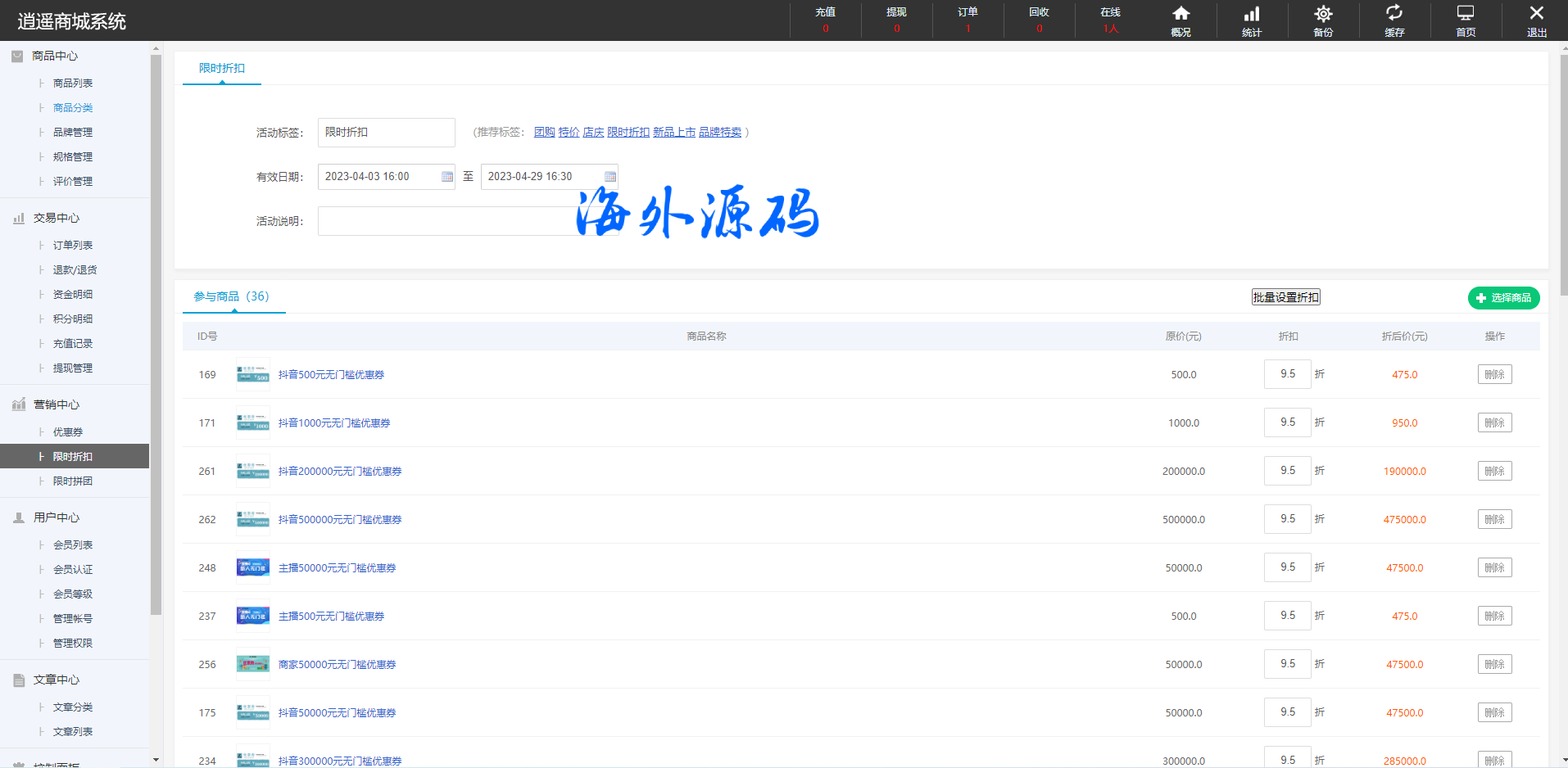 用户前端下单,后台订单可以直接回收,后台支持设置默认邀请码和抢卷时间限制