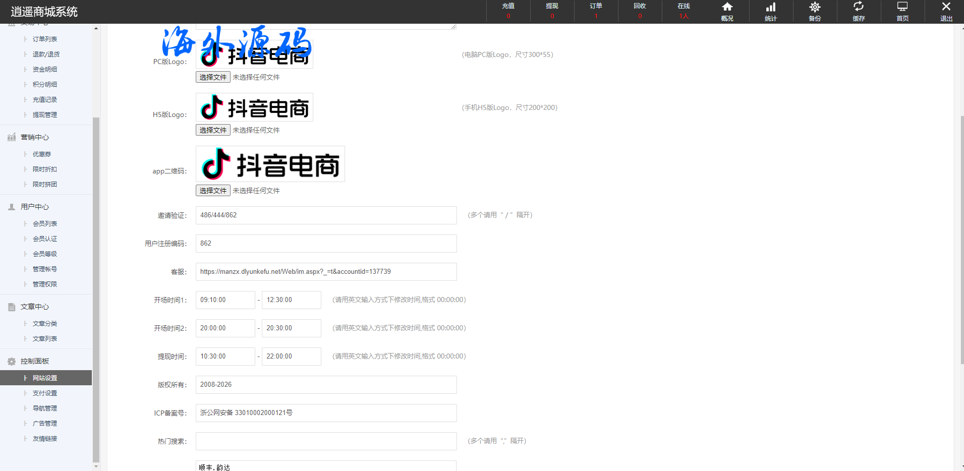 系统是基于逍遥商城二开的系统,pc手机端都新增了邀请码验证
