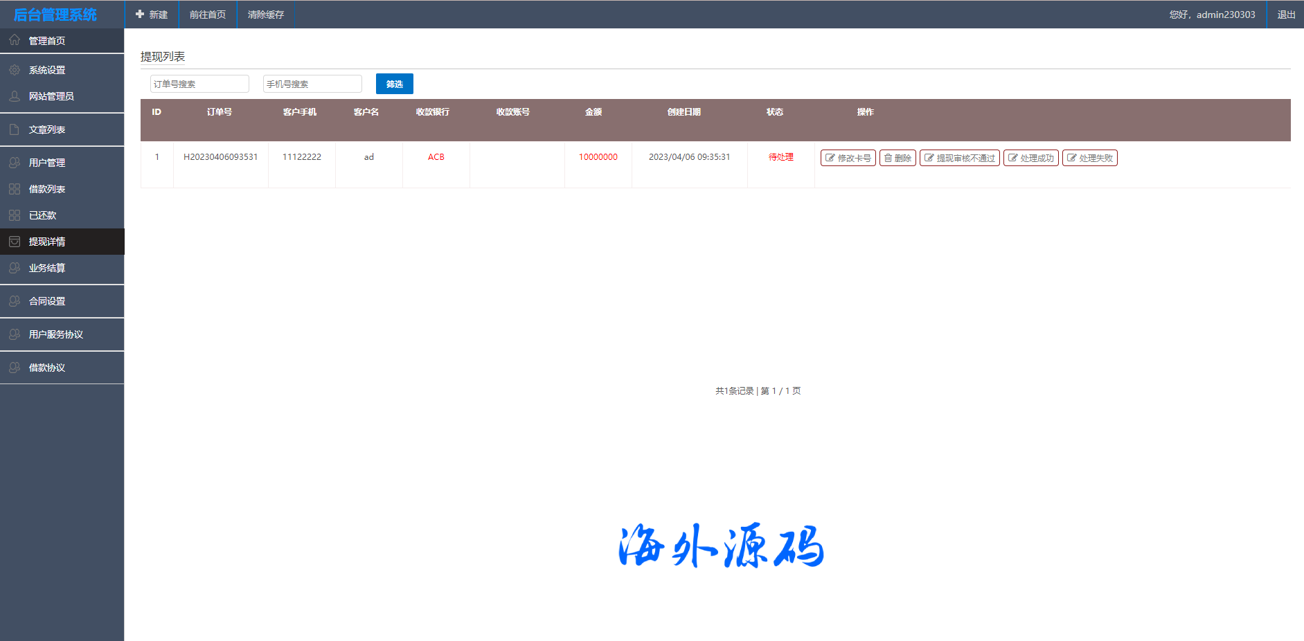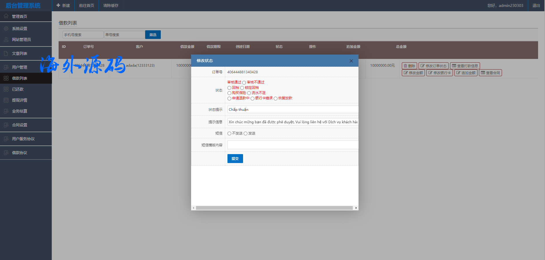 运营版越南小额贷款系统/海外套路贷/贷款平台源码