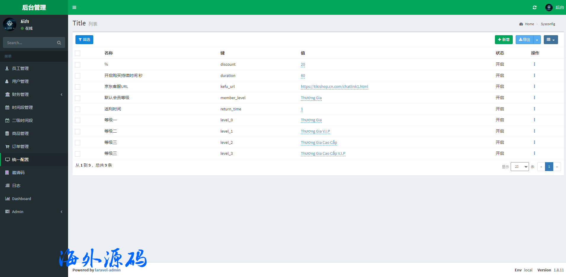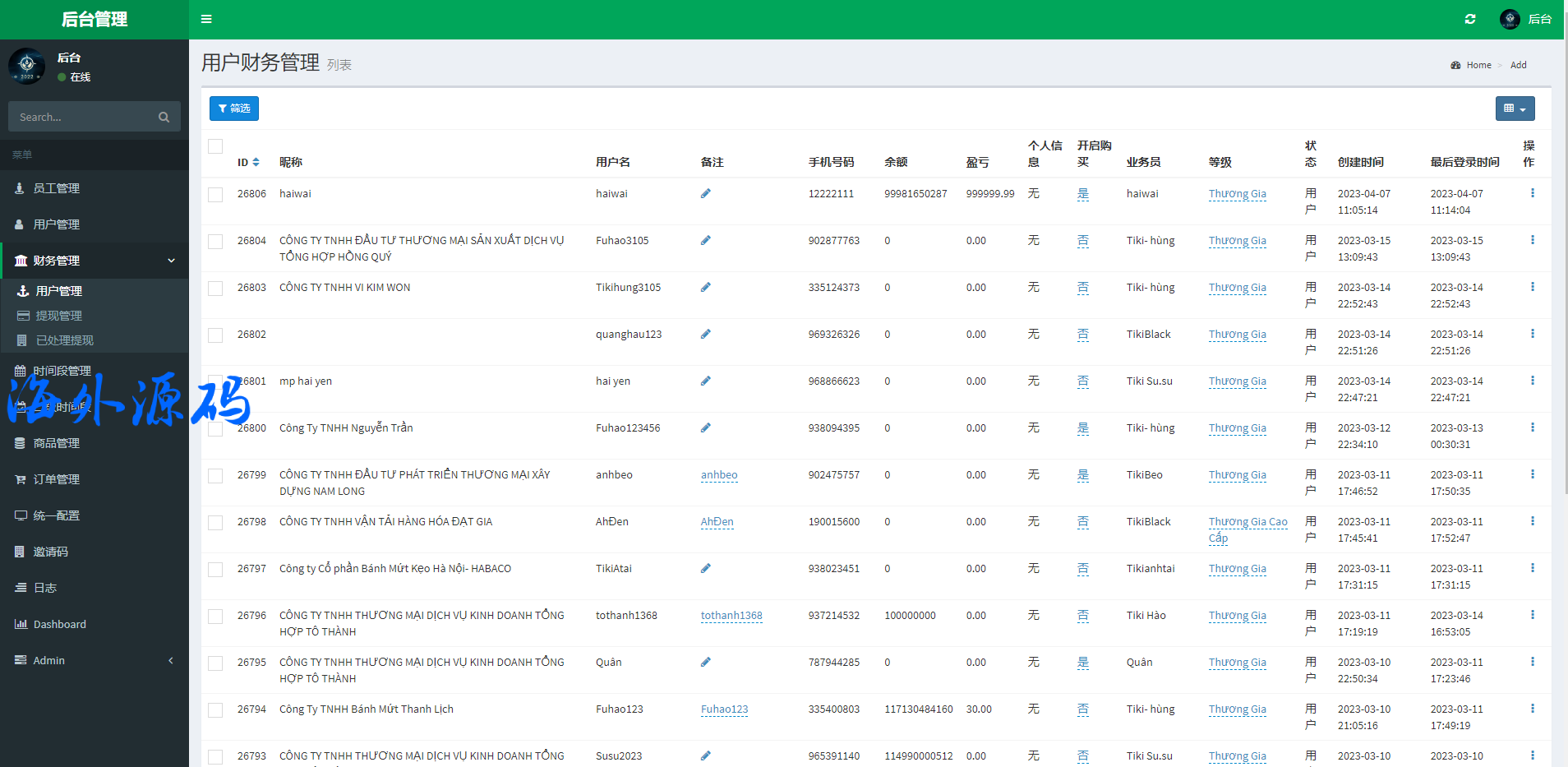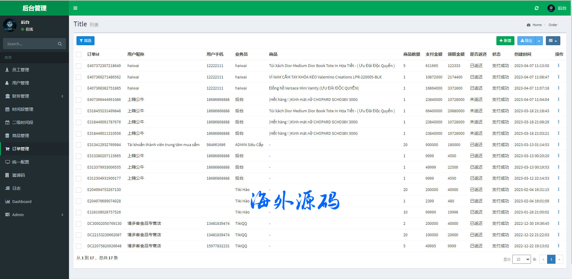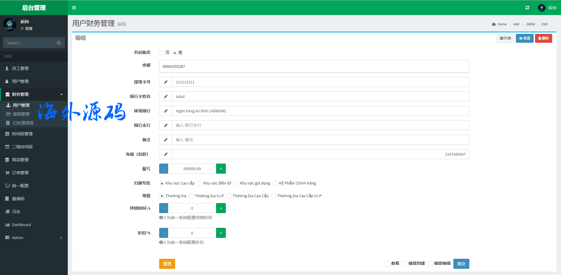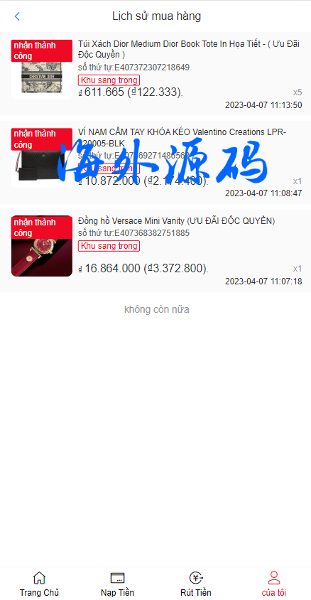 系统是别人专门为越南市场的TIKI奢饰品投资返利系统