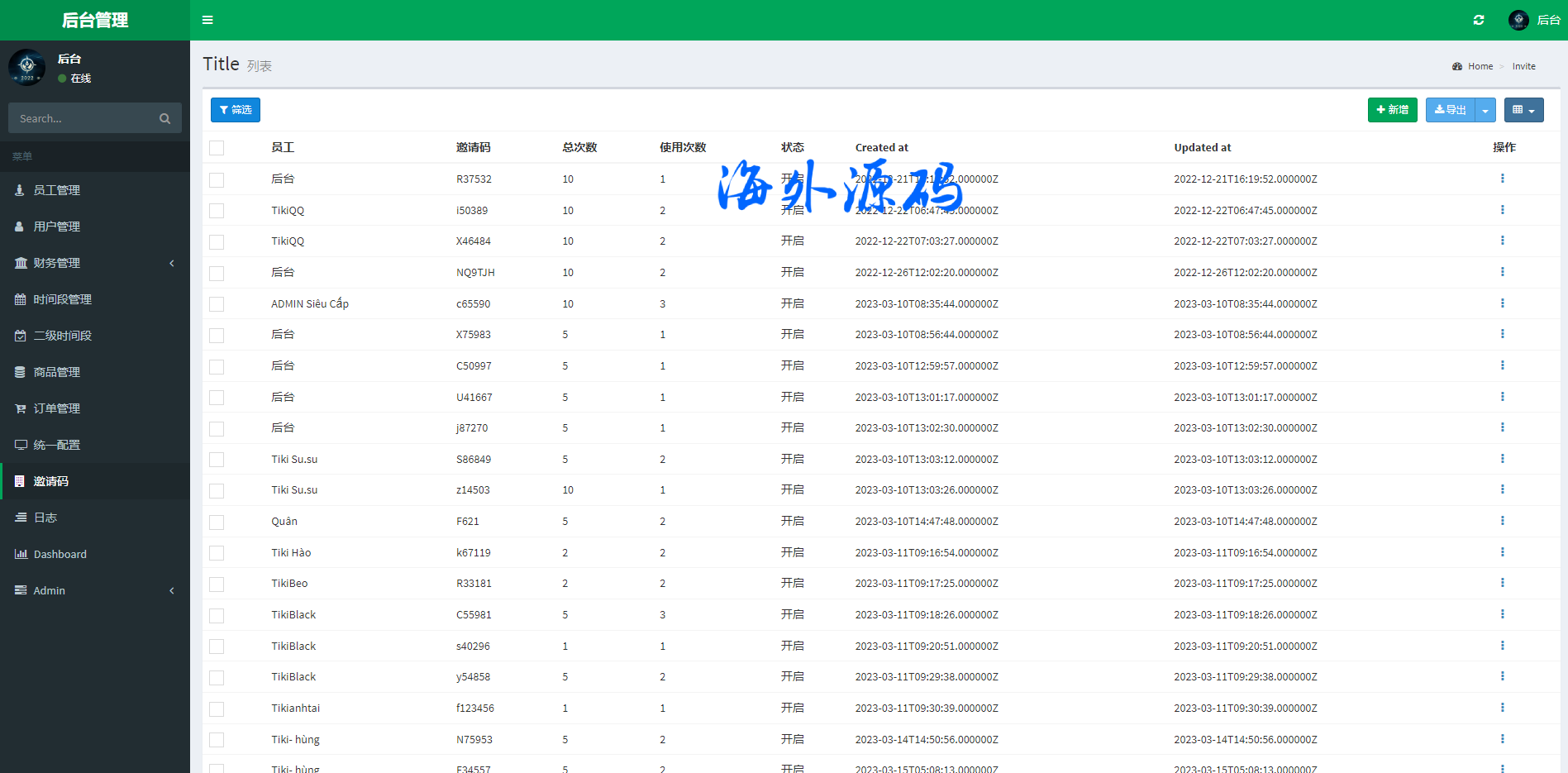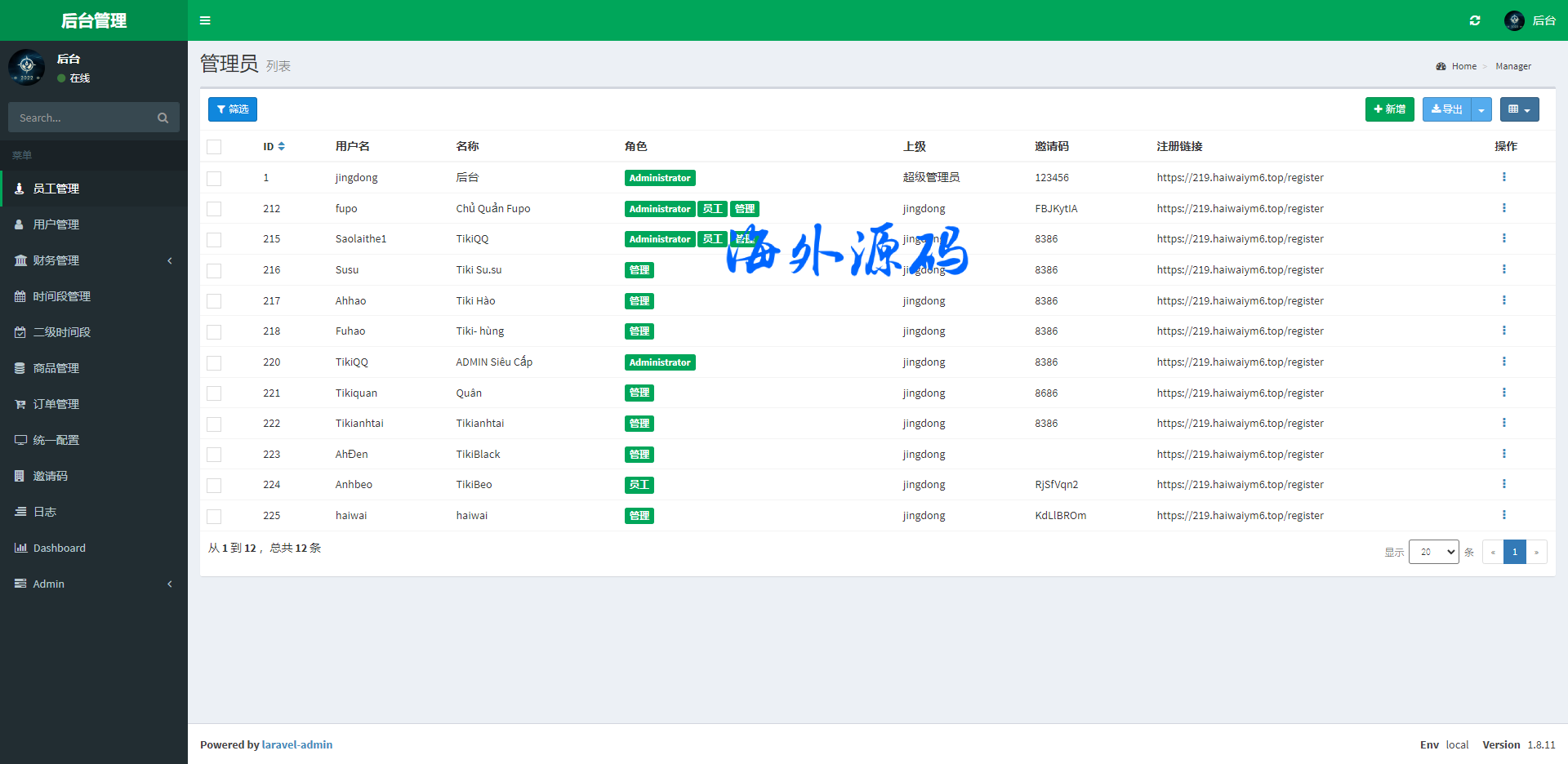 系统采用Larave框架,带权限代理后台,可单独生成邀请码,后台可设置购买权限、返现时间、持续购买