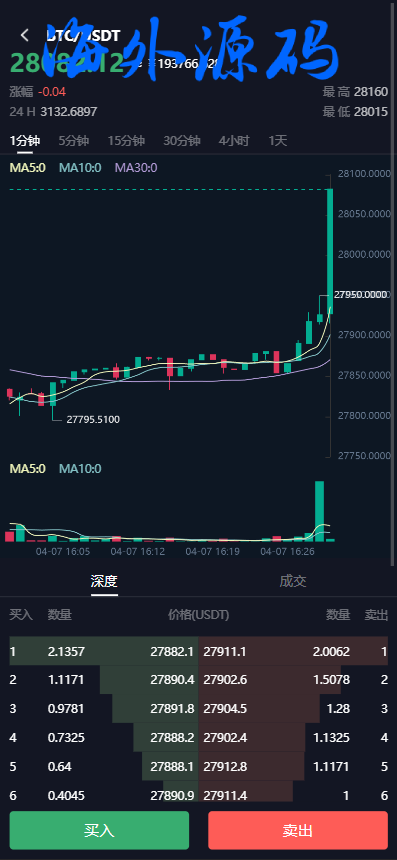 1.带web、wap端;均有高端k线和委托档位,app端一键封装。