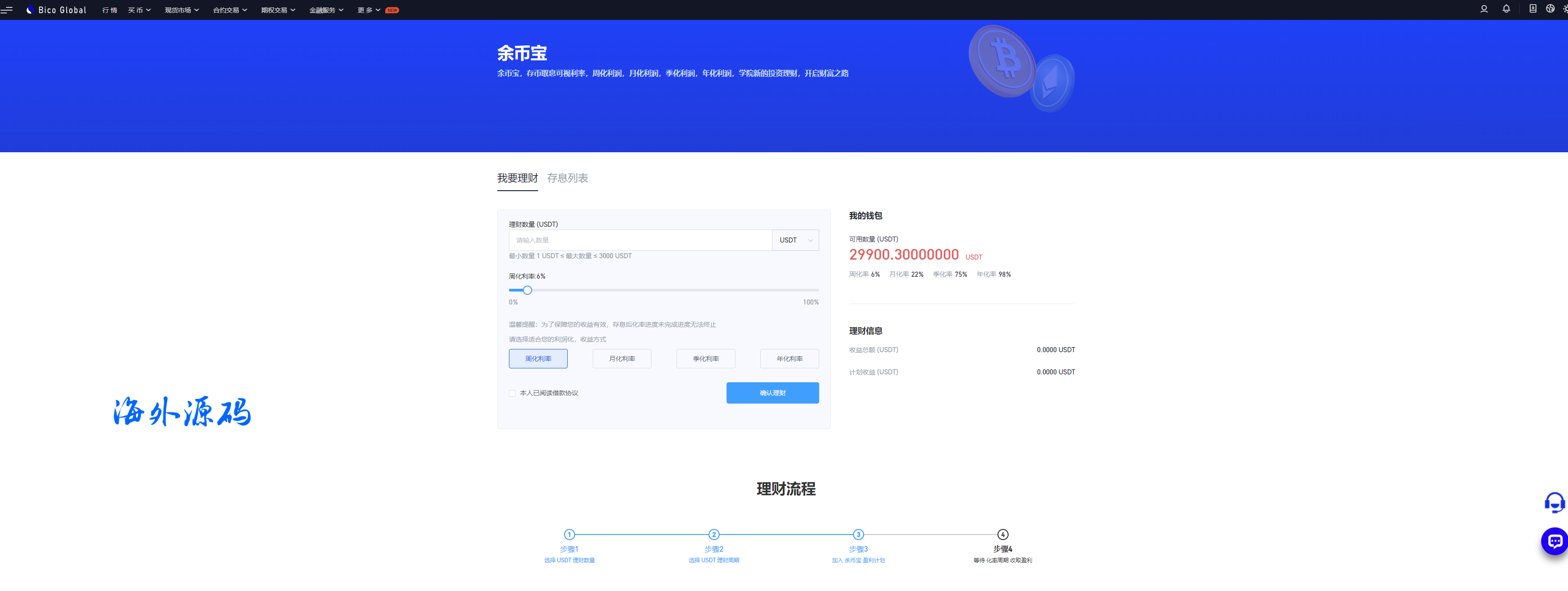 4.带邀请注册三级奖励、认购IEO锁仓机制、分红功能、定期释放,理财功能、持币生息,新币投票,支持交易。