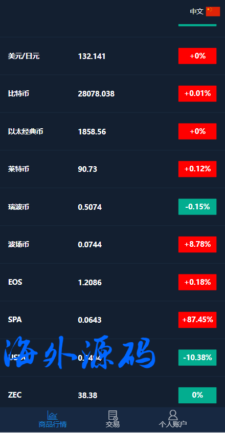前端是双语言(支持新增多语言),产品带外汇跟虚拟币,K线正常使用