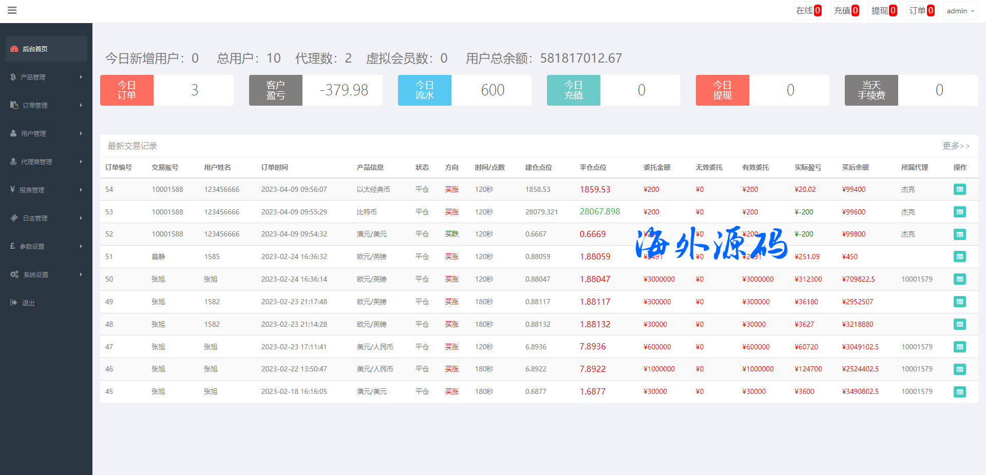 新版双语言汇汇通系统/代理后台/外汇虚拟币微盘/微交易系统