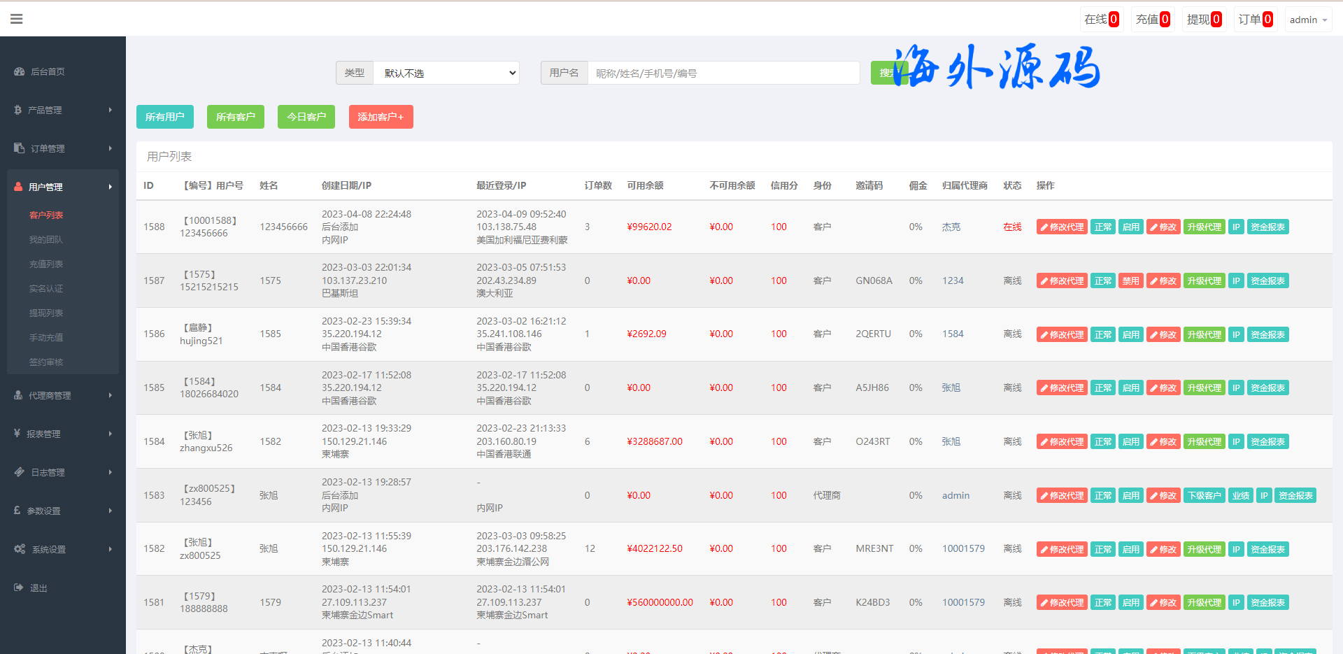 此套是重构版的汇汇通系统,框架也整体优化重构了,新增了代理后台