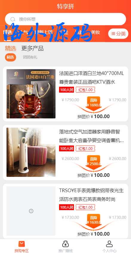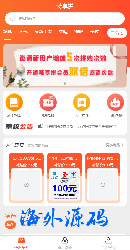 uniapp拼团系统/拼团红包返利系统/拼拼有礼拉新商城