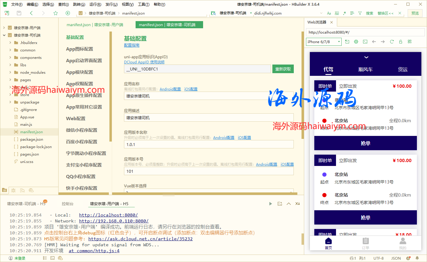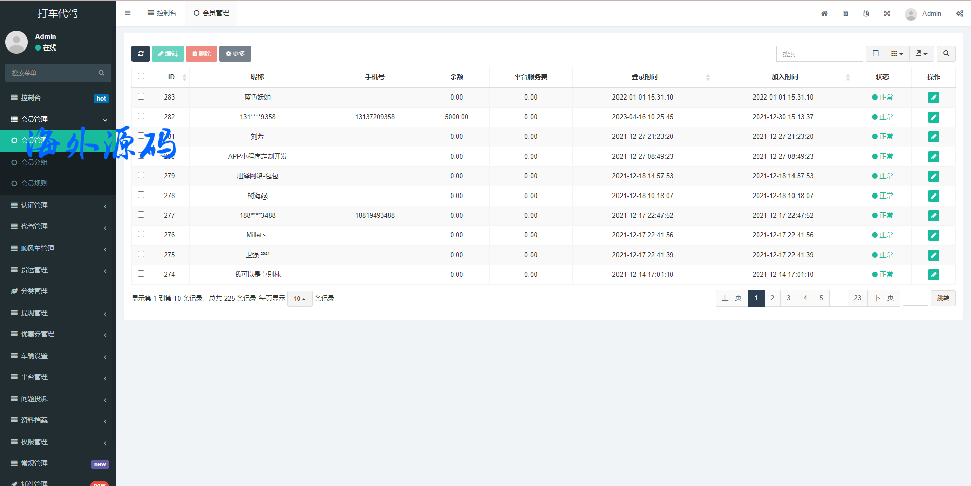 前端跟司机端均为uniapp源码,后端是Fastadmin框架,单源码无教程需要的来