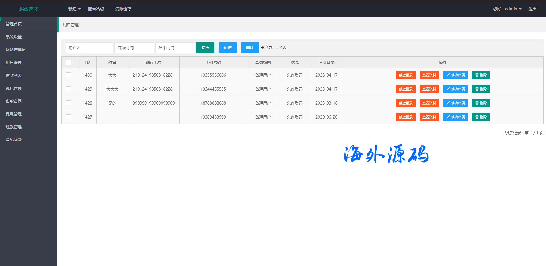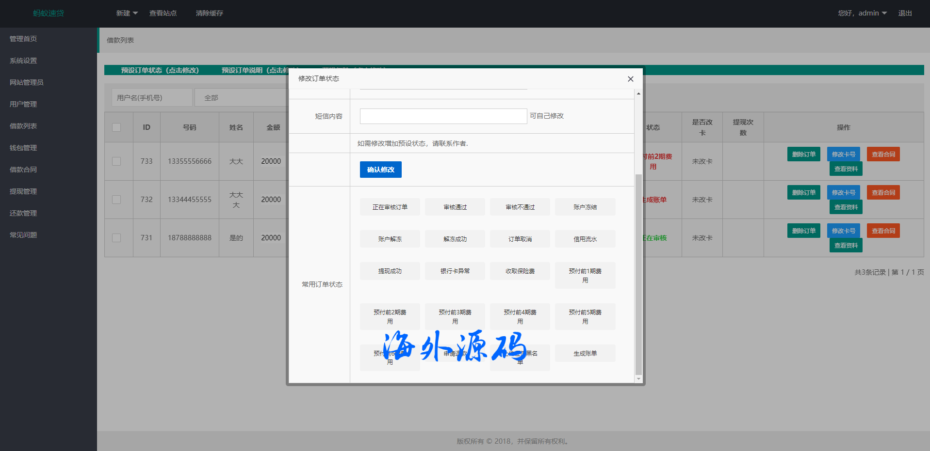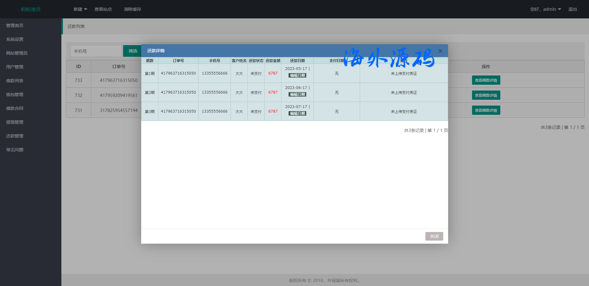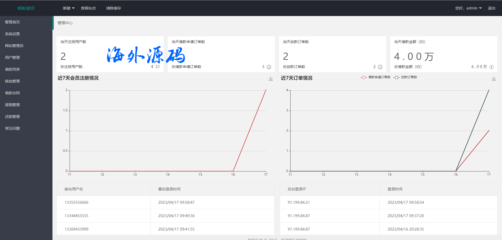 经典版的小额贷款系统,功能齐全前端中文支持二开其他语言