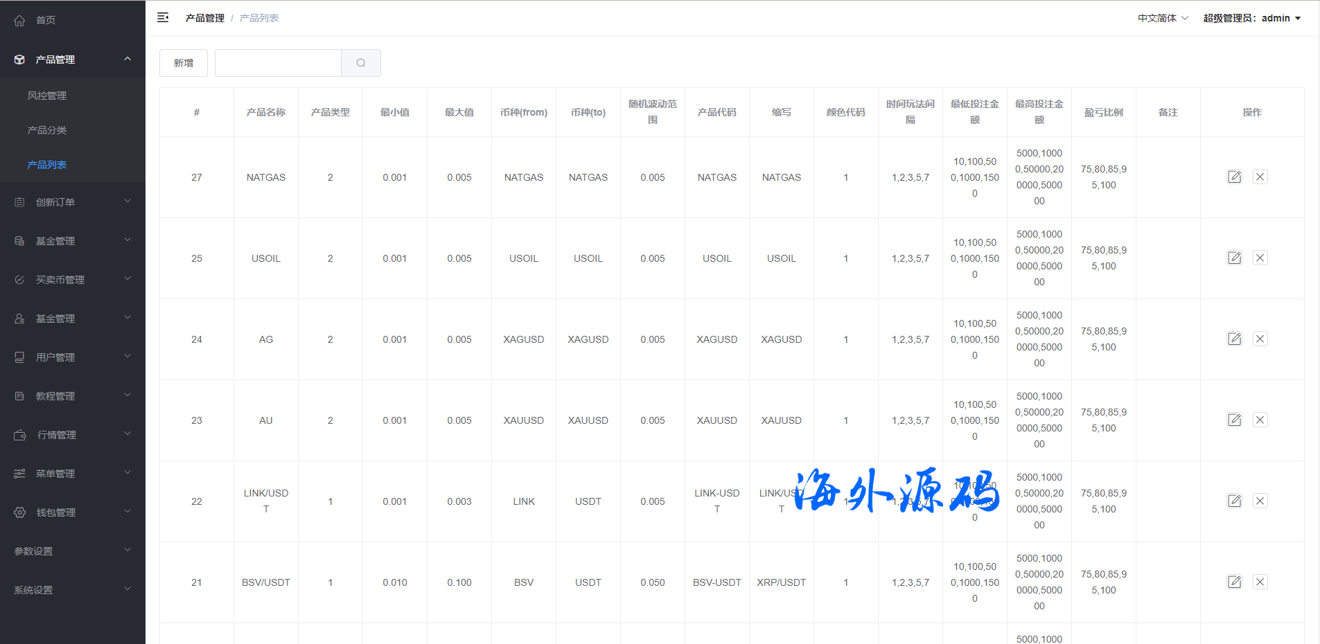 系统产品: 虚拟币 外汇 黄金 白银 原油 天然气   (可以自行添加)