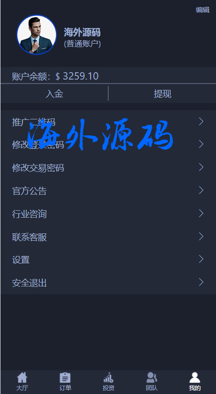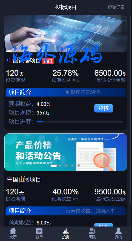 源码前端三种语言:中文、英文、葡萄牙语,系统自带客服系统、理财投资、推广等功能