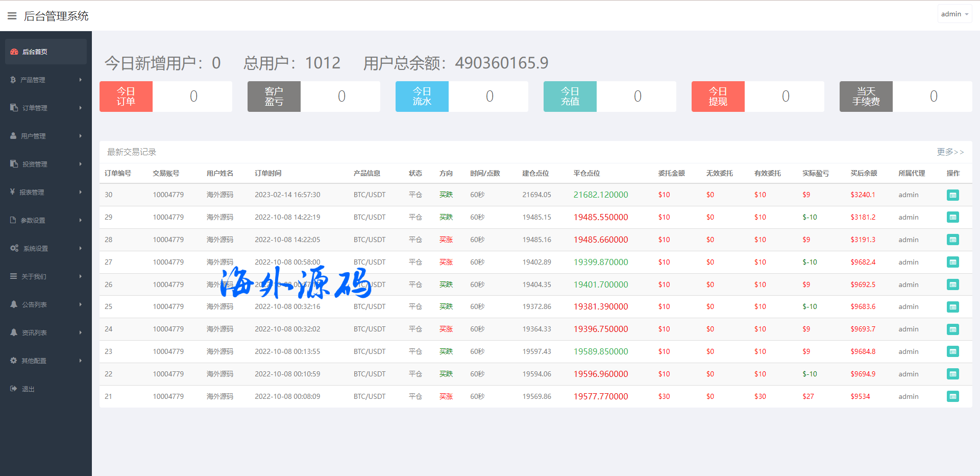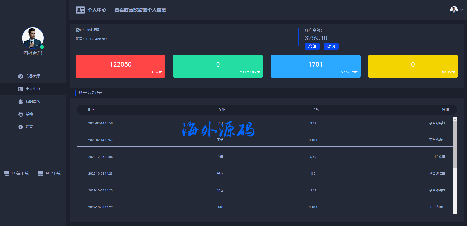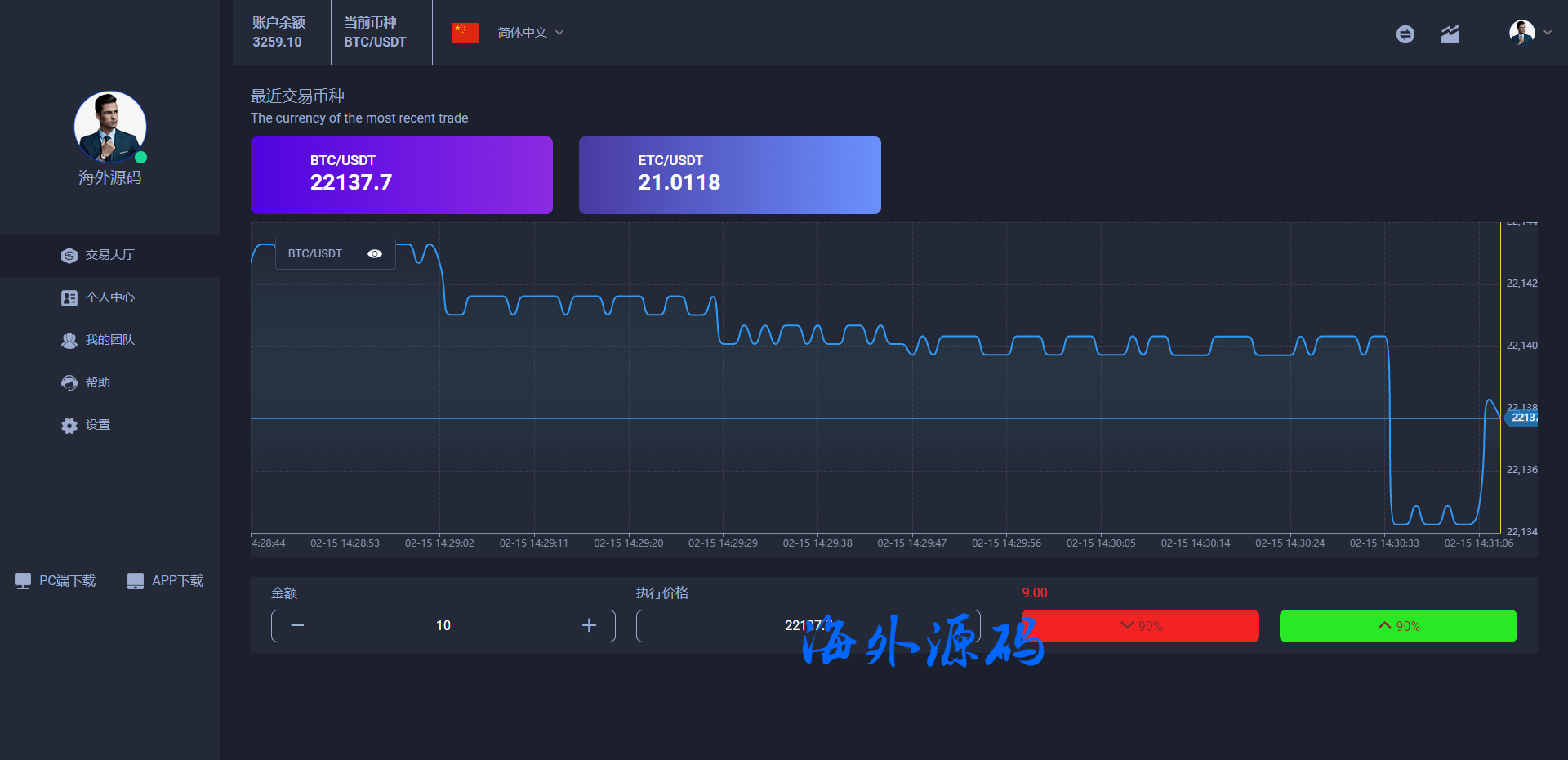 全新UI微交易系统/微盘秒合约源码/PC版微盘/虚拟币交易所源码