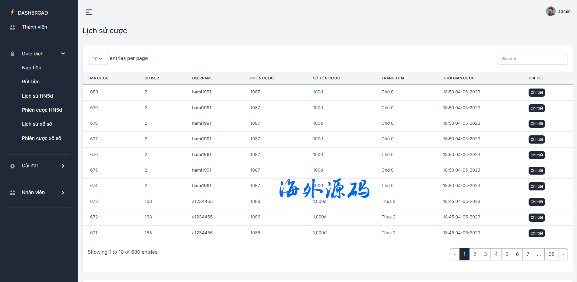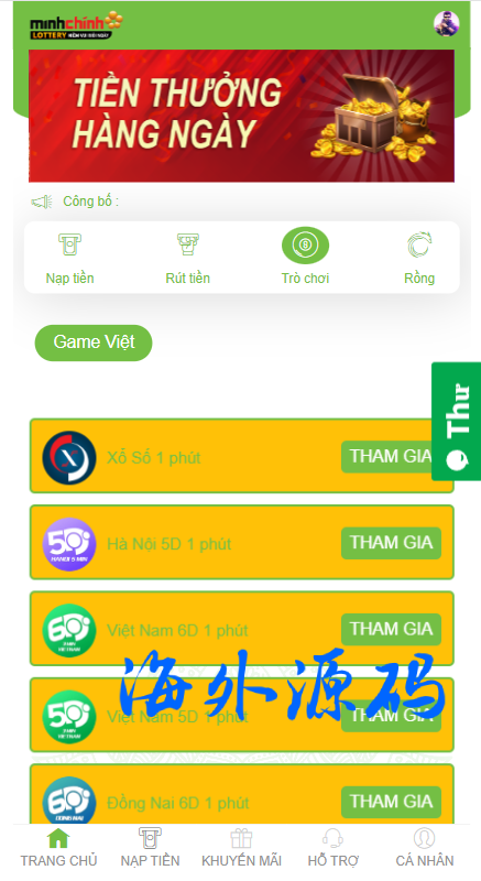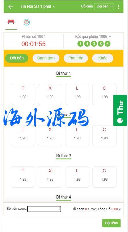 此套是纯越南的彩票cp系统,系统默认只有俩个一分钟彩种,但是前端添加了多个名称游戏