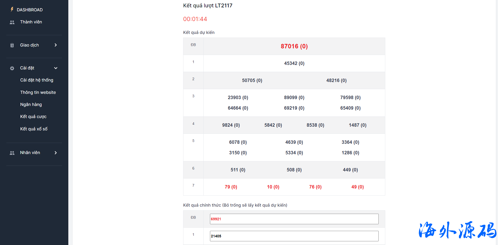 越南彩票系统/海外cp系统/投资彩票游戏/预设开奖