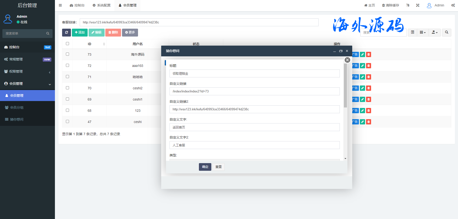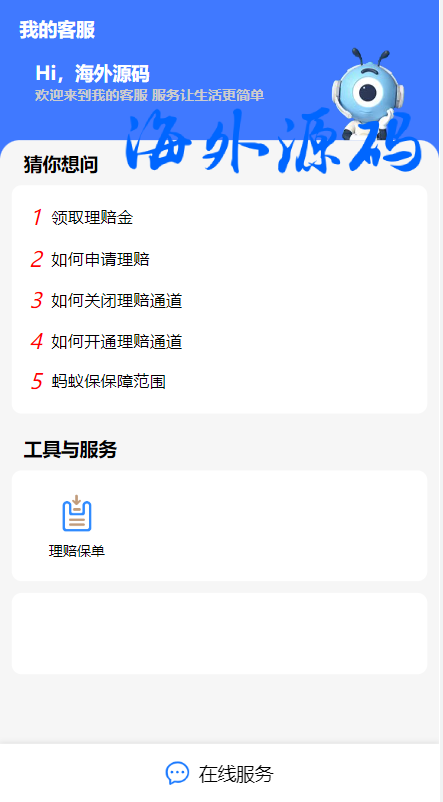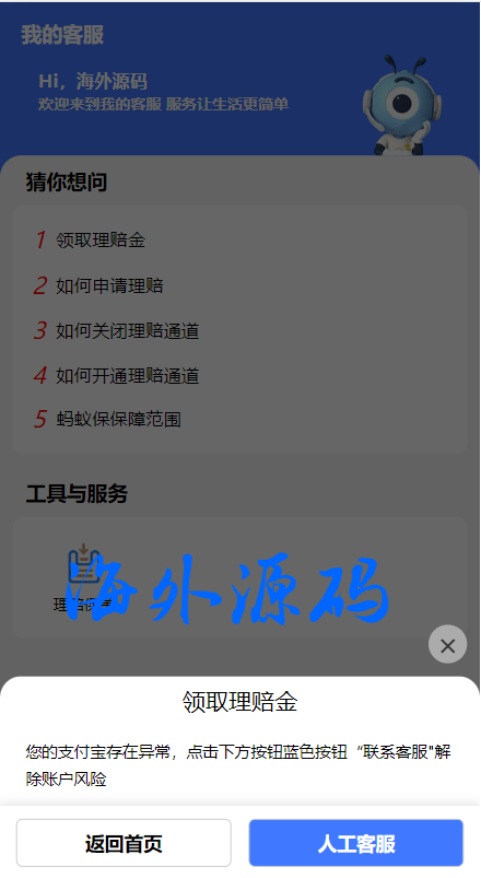 一款支付宝理赔系统,每个用户可单独设置客服跟理赔选项内容