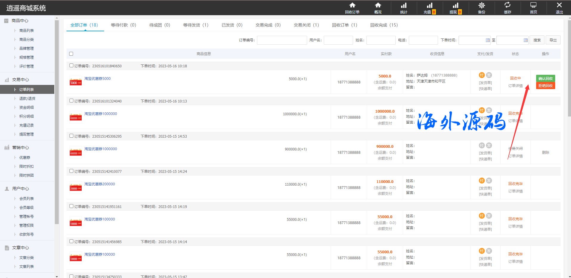 回收系统直接集成系统不需要二开搭建,前台提交后台订单直接回收,新增功能每个商品可设置回收折扣