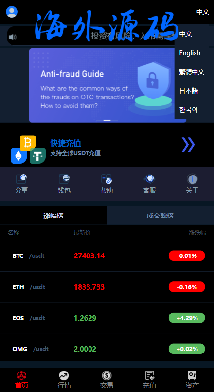 海外微盘系统/多语言虚拟币微交易/伪交易所/实名认证