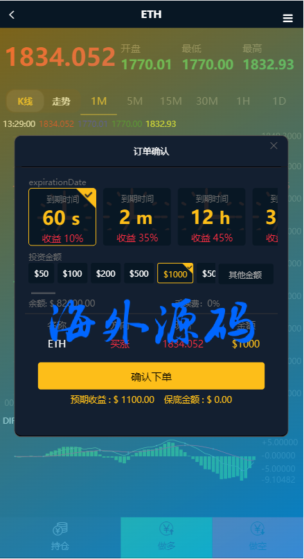 新版海外微交易系统/泰国虚拟币微盘/秒合约系统/前端uniapp