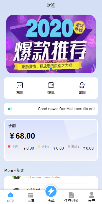 海外抢单刷单系统/信誉分/签到工资/多语言刷单